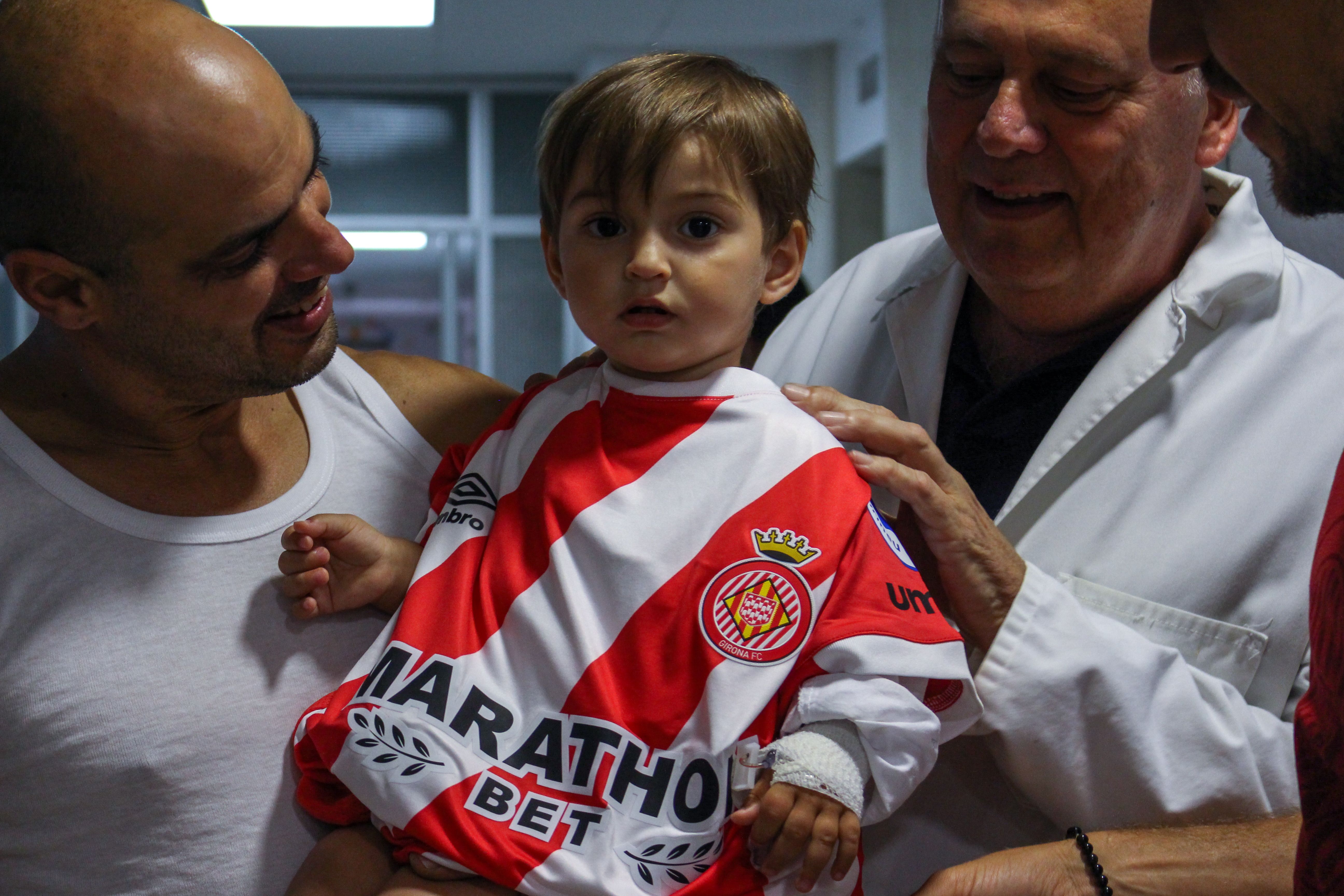 La visita d’ahir, amb la presència del President del club, Delfí Geli, i del capità Àlex Granell, va servir per fer lliurament de les primeres unitats i explicar als nens ingressats la iniciativa, que van rebre amb entusiasme.