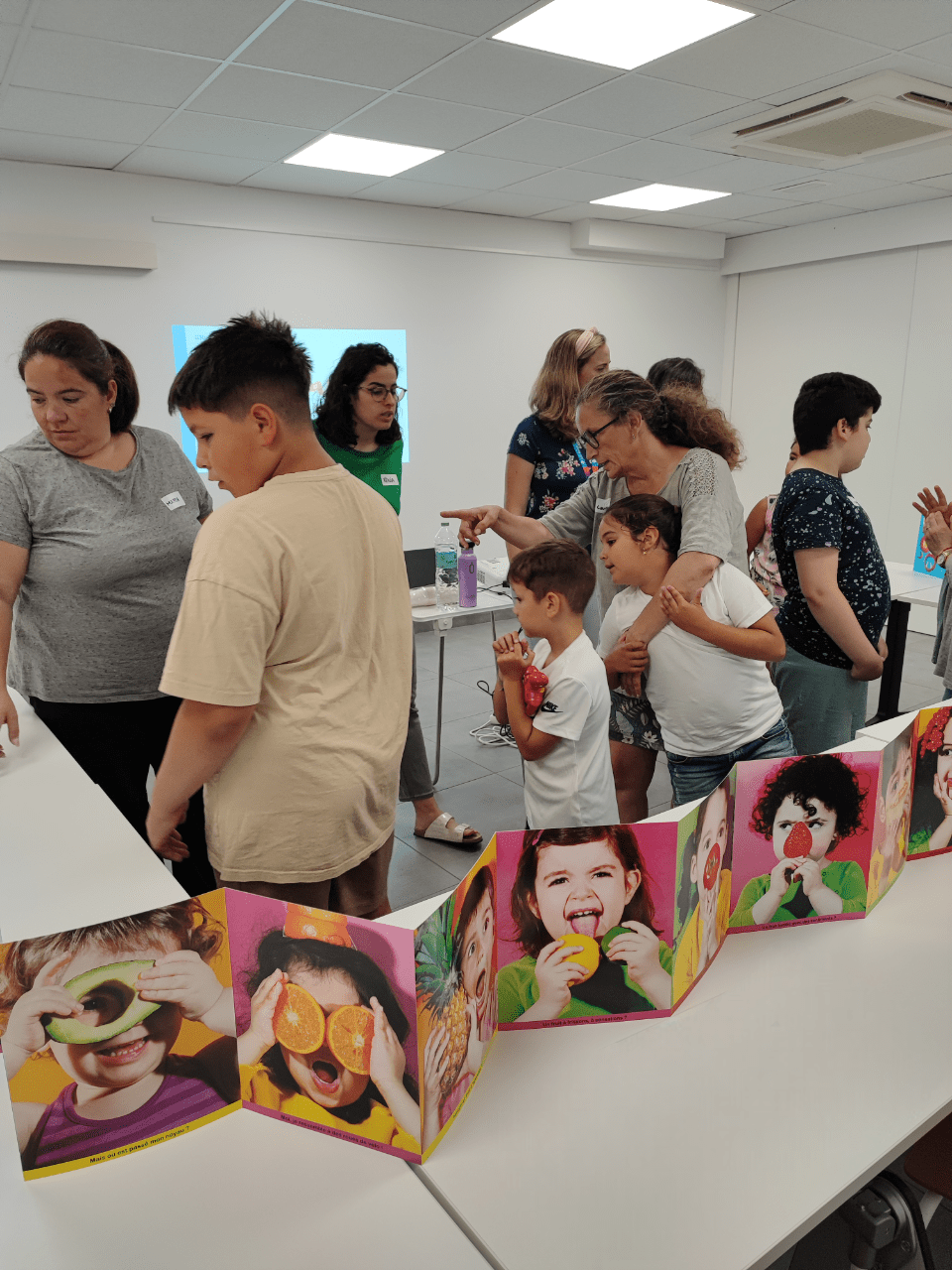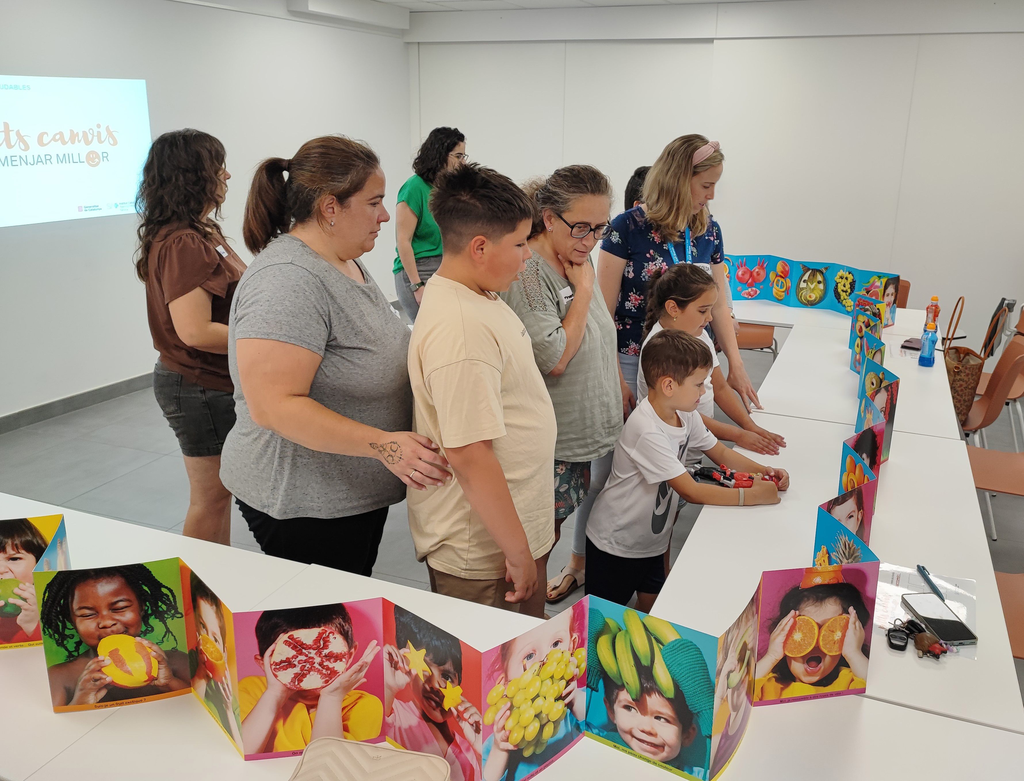 Cada sessió es planteja de manera participativa i majoritàriament es treballa amb el grup complet tot i que, un cop establert el vincle, en alguna activitat se separen els infants dels adults. Per avançar cap a una alimentació més saludable, es planteja un aprenentatge a través de jocs i petits reptes seleccionats per la mateixa família. En aquest context, la primera trobada ja introdueix el benefici de tenir una alimentació més integral, donant a conèixer aquells productes que poden enriquir la dieta. Posteriorment, es treballa amb diferents fruites i verdures per educar els infants en nous gustos; s’explica l’estructura d’un plat saludable i es donen eines perquè els pares puguin configurar un menú que equilibri fibra, hidrats de carboni i proteïnes. Una sessió també està dedicada a destacar què s’amaga en l’etiquetatge d’un producte comercial.