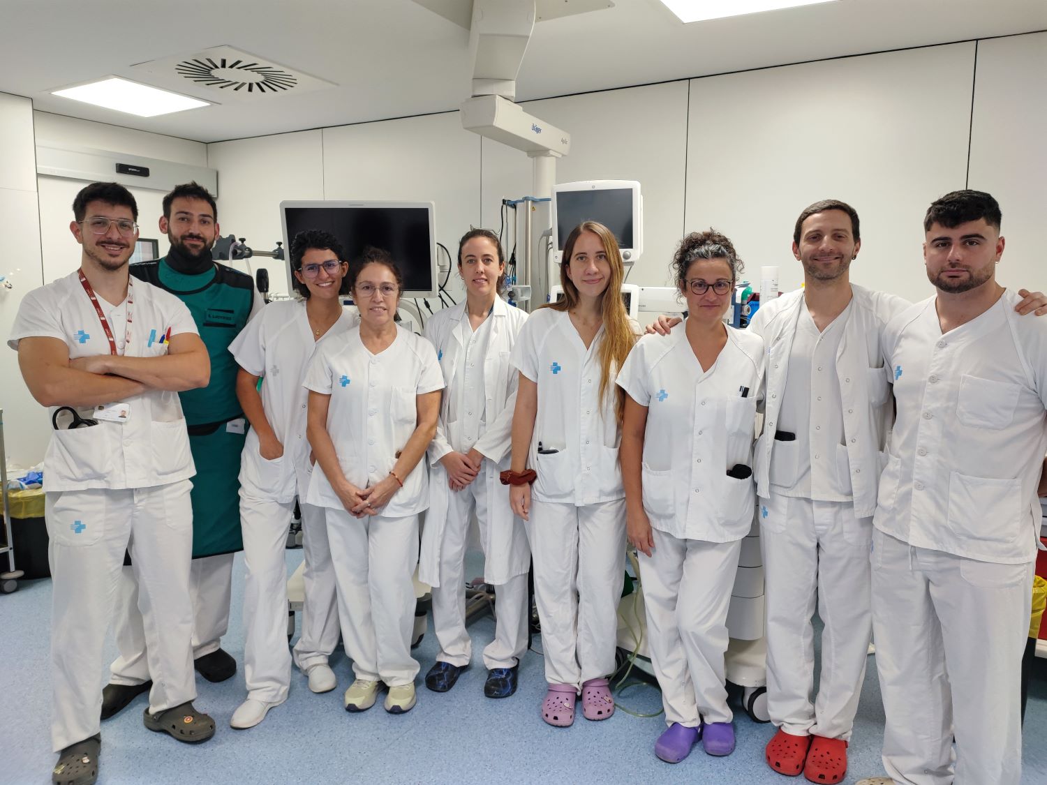 FOTO 1: Professionals de la Unitat de Broncoscòpies del Trueta, encarregat de realitzar els diferents procediments que permeten observar l'interior dels pulmons per tal d'incidir en diferents patologies.