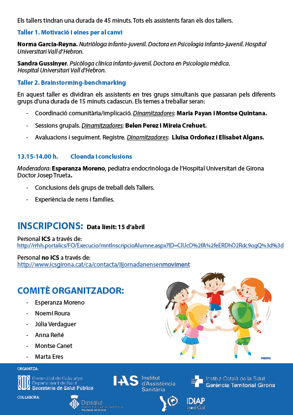 L'Auditori Josep Irla de Girona acollirà el proper 18 d'abril la II Jornada de Nen@s en Moviment, que  pretén ser un espai de trobada amb els diferents professionals implicats amb el programa, que s'està duent a terme des de fa 4 anys. L'objectiu és poder intercanviar experiències viscudes a nivell local i poder-ne extreure les propostes per seguir millorant cada any.