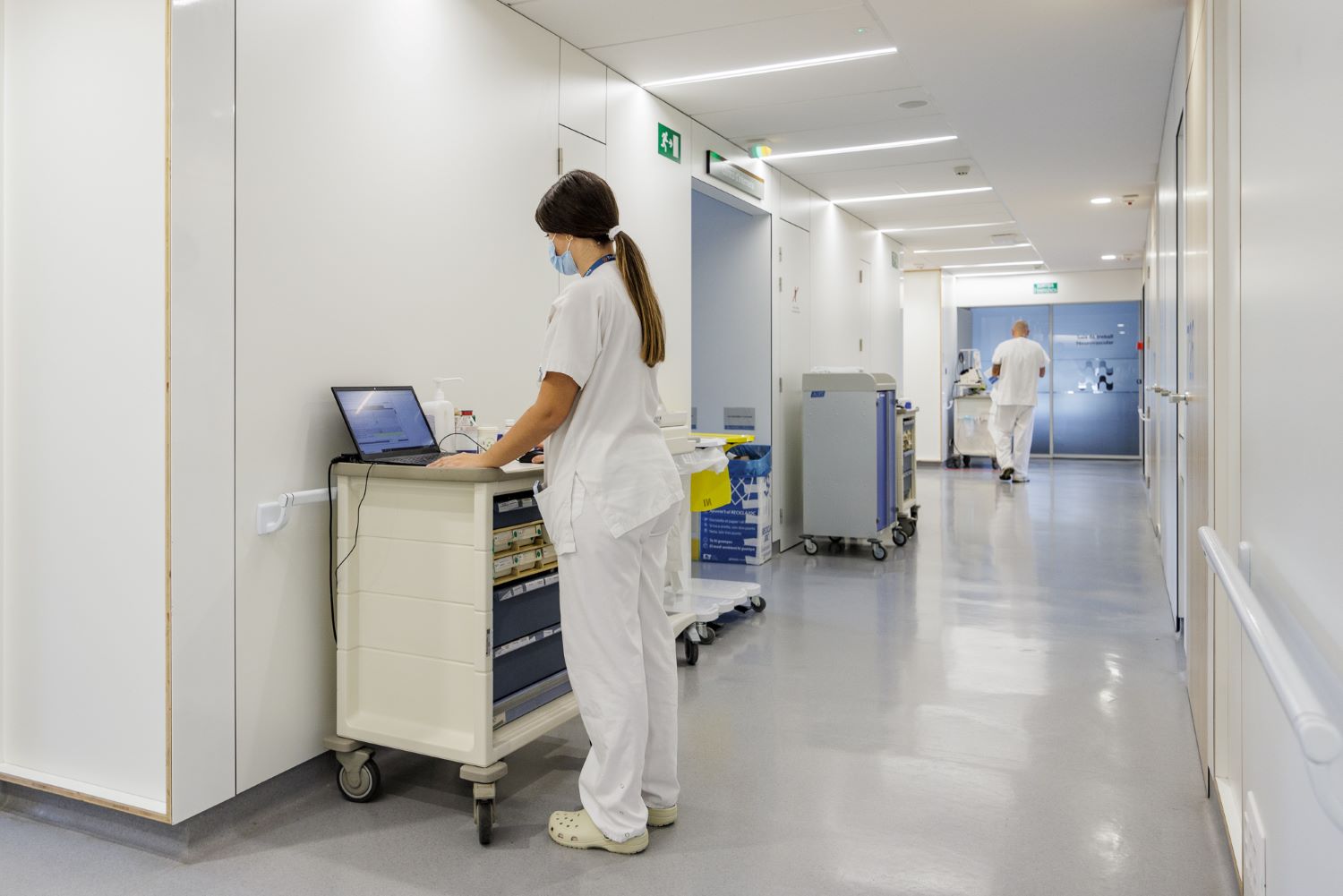 FOTO 2: Passadís de la Unitat d'Ictus del Trueta del Servei de Neurologia, on s’instal·larà una dutxa accessible que facilitarà que molts pacients hospitalitzats es puguin dutxar de manera més autònoma.