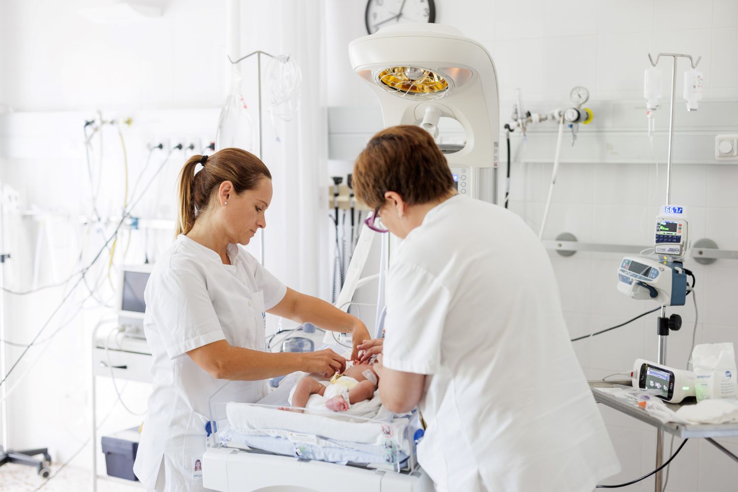 FOTO 1: Professionals del Servei de Pediatria de l'Hospital de Santa Caterina atenen un nounat. Entre d'altres actuacions, la campanya permetrà adquirir nous equipaments per al Servei.
