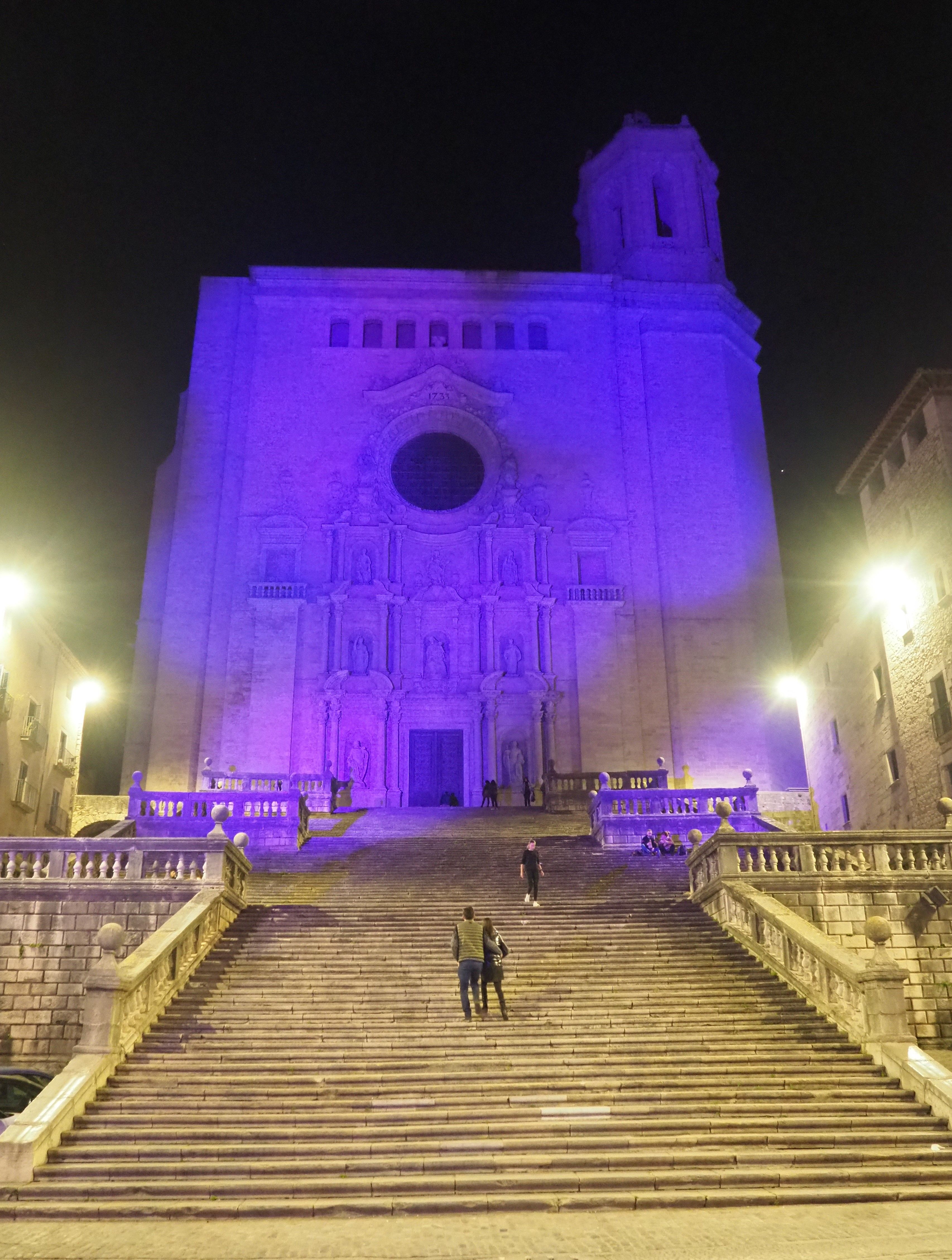La catedral de Girona s’ha il·luminat avui de color lila, per commemorar el Dia Mundial del Nen Prematur, una celebració que s’estén per tot el món amb la il·luminació d’edificis emblemàtics amb aquest color, que identifica la celebració del dia mundial.