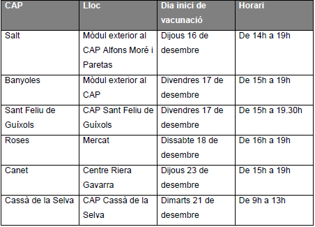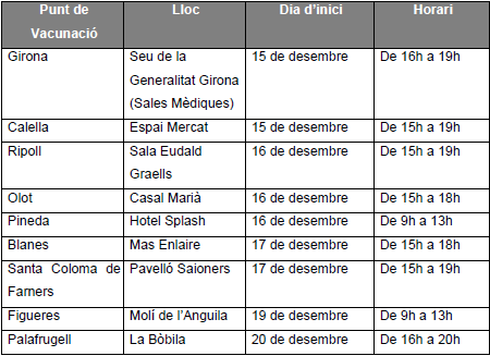 Dia d’inici de l’activitat als punts de vacunació pediàtrica de la Regió Sanitària de Girona. S’hi poden dirigir tots els infants de 5 a 11 de la Regió Sanitària de Girona.