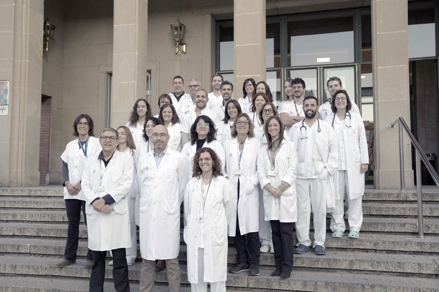 Els professionals del Servei de Pneumologia dels hospitals Trueta i Santa Caterina a les escales d'entrada del Trueta.