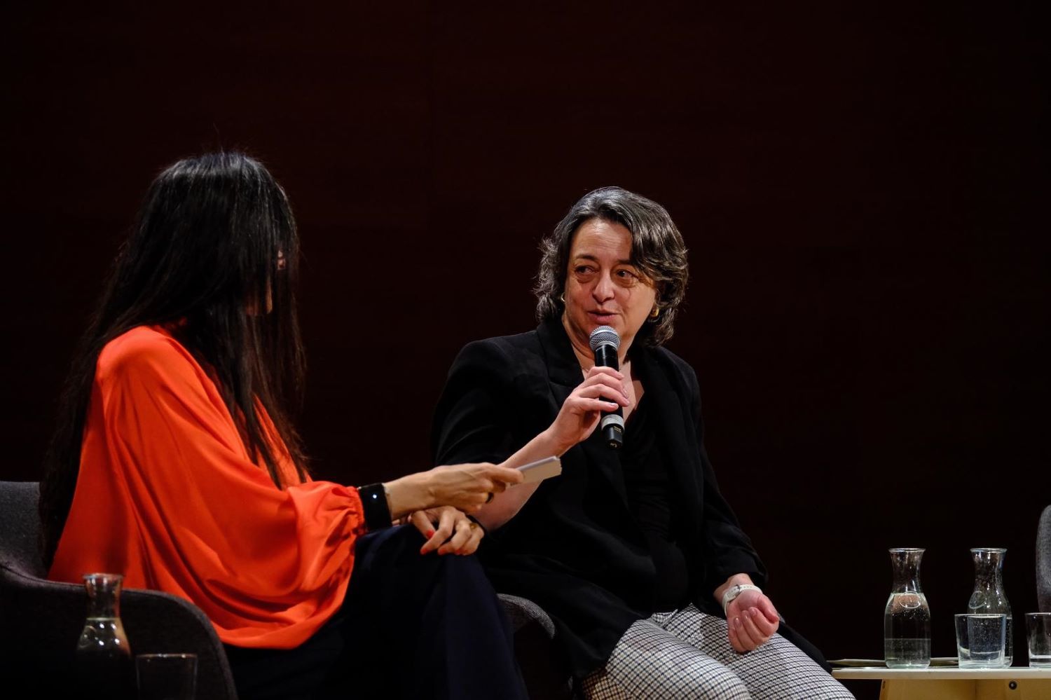FOTOS 5 i 6: Pilarín Bayes durant la presentació de 'Petita història del Trueta', que retratar amb el seu característic estil l’evolució de l’Hospital en consonància als grans canvis que ha experimentat la pràctica sanitària.