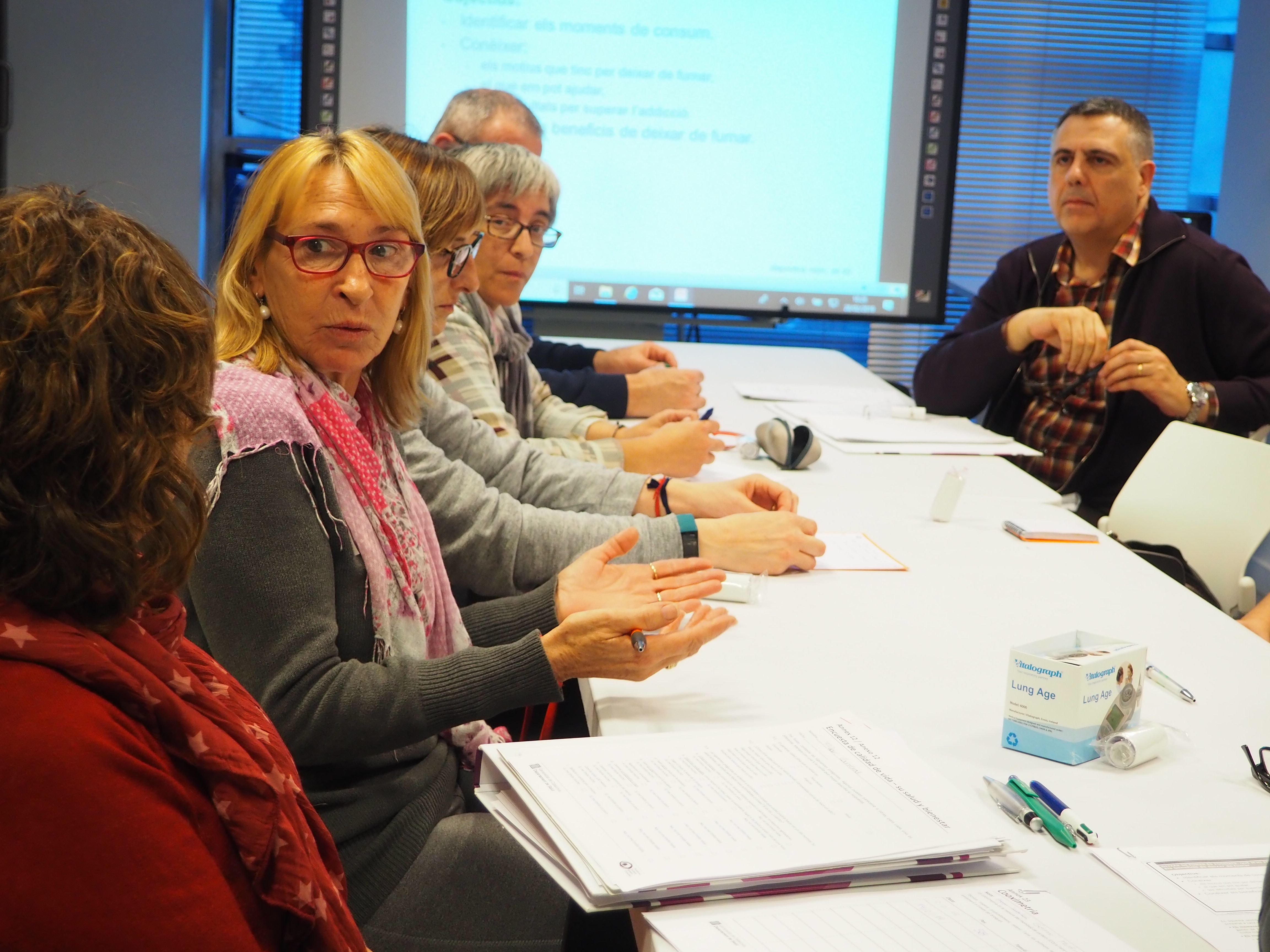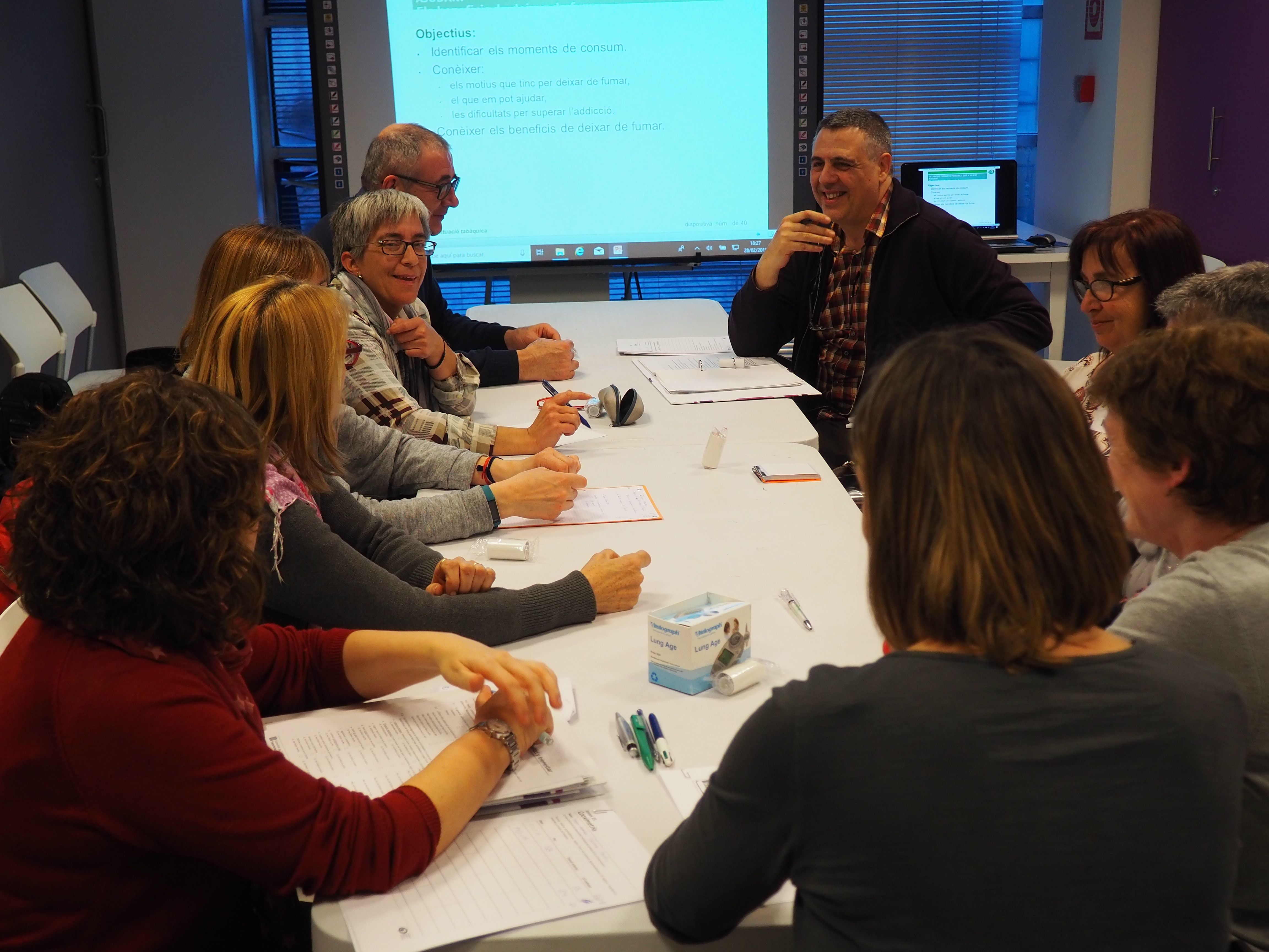 Fotografies del grup de Pacient Expert de deshabituació tabàquica, del CAP d'anglès (La Selva)