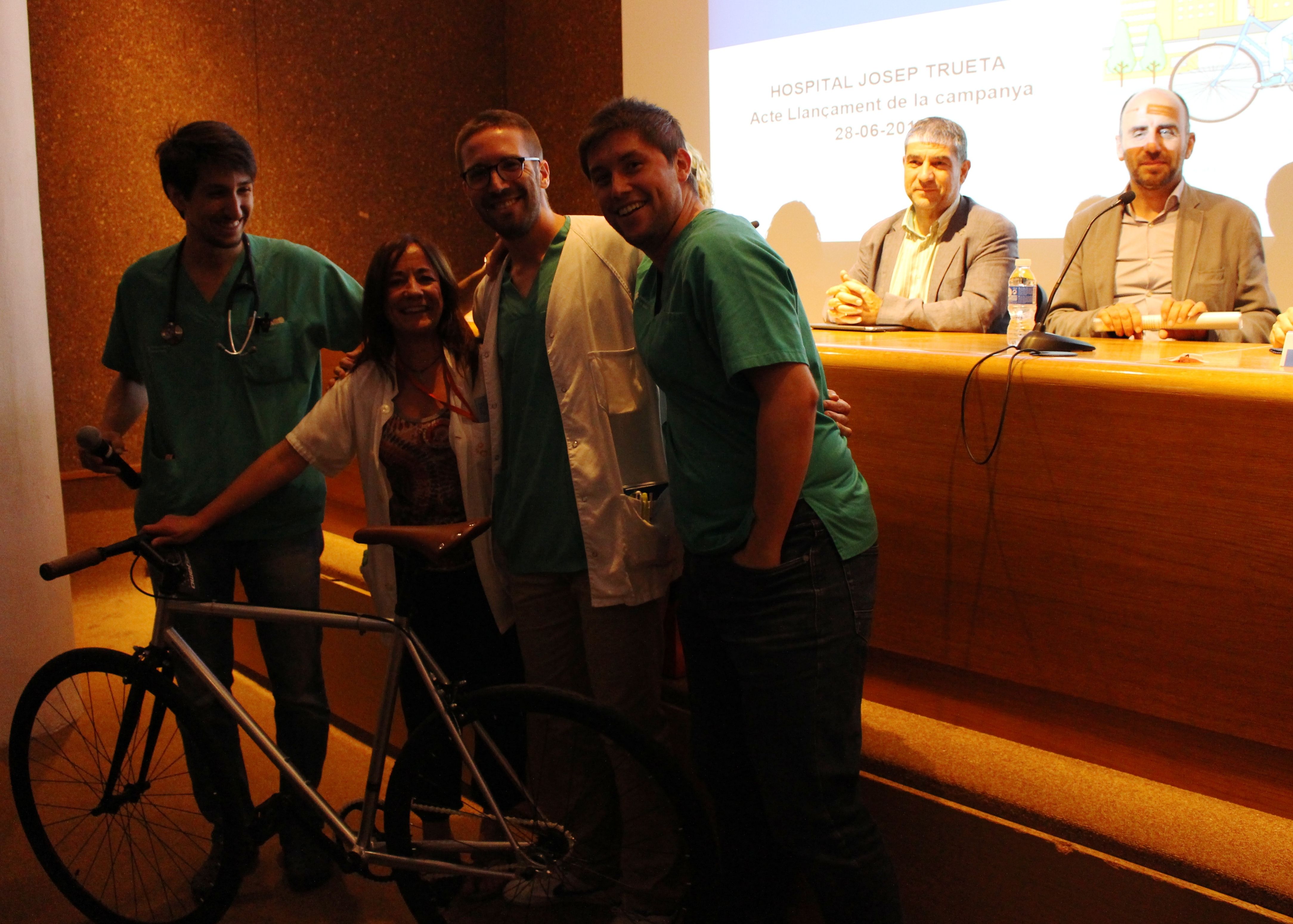 Un grup de metges residents del Servei de Cardiologia de l’Hospital Universitari de Girona Dr. Josep Trueta ha engegat la campanya #ElTruetaPedala, que promou l’ús de la bicicleta entre els professionals del centre sanitari. L’objectiu és fer créixer el nombre de treballadors que van en bicicleta a la feina i, per això, inicien aquesta acció de promoció de la salut que també proposa canviar el vehicle privat per l’autobús públic als qui resideixen fora de la ciutat de Girona. D’aquesta manera sumen a l’objectiu de fer salut el de ser més curosos amb el medi ambient.