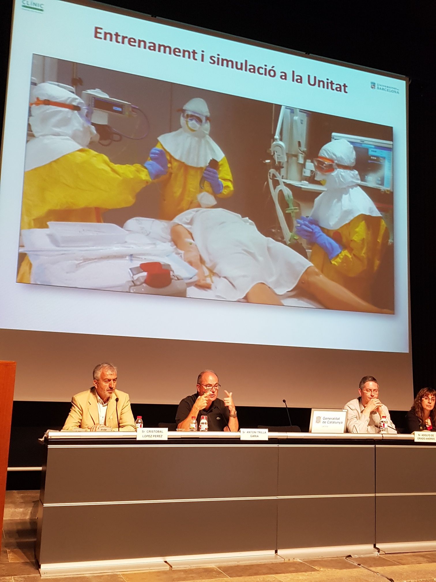 Antoni Trilla, metge epidemiòleg de l’Hospital Clínic, ha parlat sobre els perills de dues de les malalties més infeccioses, la febre hemorràgica de l’Ebola i la de Crimea-Congo i de la vacuna que segurament ajudarà a controlar el brot actual in situ. També ha volgut posar en valor la Unitat d’Aïllament d’Alt Nivell de Catalunya, gestionada entre l’Hospital Clínic i Sant Joan de Déu (pel que fa a pacients pediàtrics), que ell mateix coordina i que és l’única que pot tractar els pacients de qui se sospita que poden tenir algunes d’aquestes malalties. En aquest sentit, ha destacat la tasca que fan els professionals per estar permanentment entrenats i prestar-se com a voluntaris per tractar-hi pacients amb malalties altament transmissibles.
