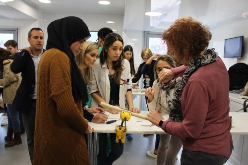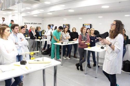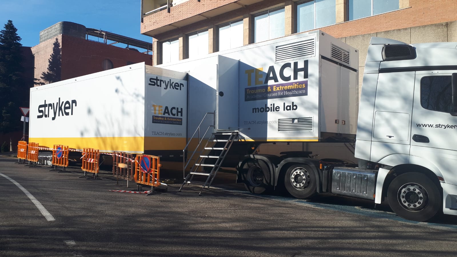 Professionals assistencials dels hospitals de la Regió Sanitària de Girona han pogut practicar tècniques i procediments de cirurgia ortopèdica i traumatològica durant ahir i avui en el marc d'unes jornades formatives que es realitzen en un tràiler de grans dimensions adaptat per aquest tipus de sessions. Es tracta d’un taller mòbil, un camió de Stryker Mobile Education Center, Trauma & Extremities, per a fer pràctiques de cirurgies de traumatologia amb ossos de plàstic. El tràiler ha estat aparcat a l'Hospital Universitari de Girona Dr. Josep Trueta ahir i avui. Ahir la sessió va estar dirigia principalment a especialistes i professionals d'infermeria dels hospitals comarcals de la Regió, mentre que avui s'ha enfocat principalment als del mateix centre hospitalari.