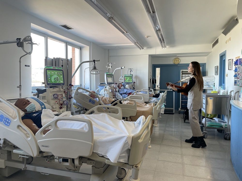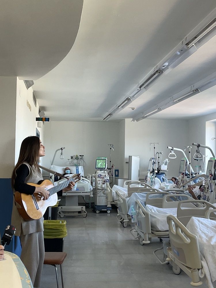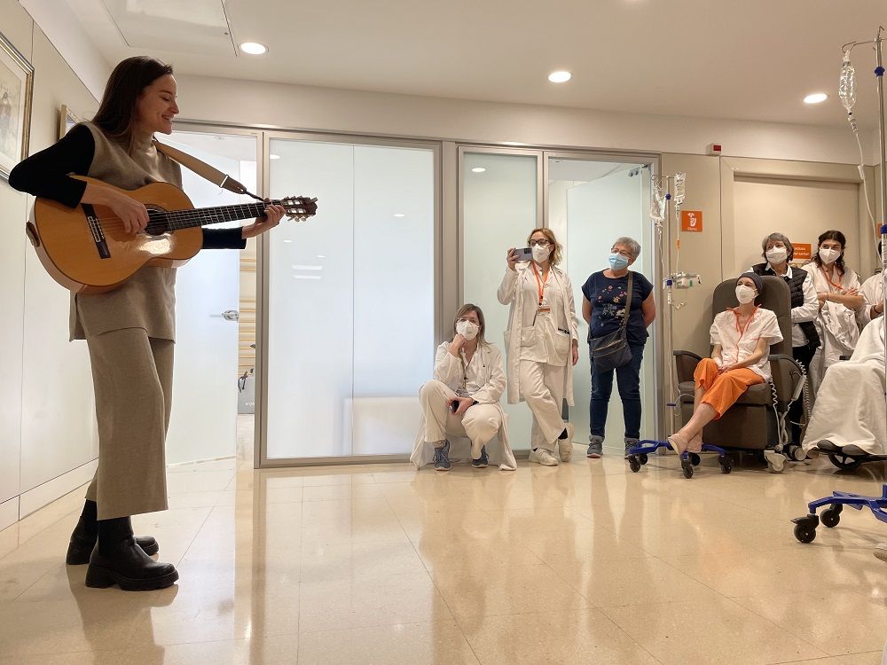 Judit Neddermann és l’artista que ofereix els primers concerts del Sinèrgic, que han tingut lloc aquest matí a la Unitat de Diàlisi i a la planta d'Oncologia
