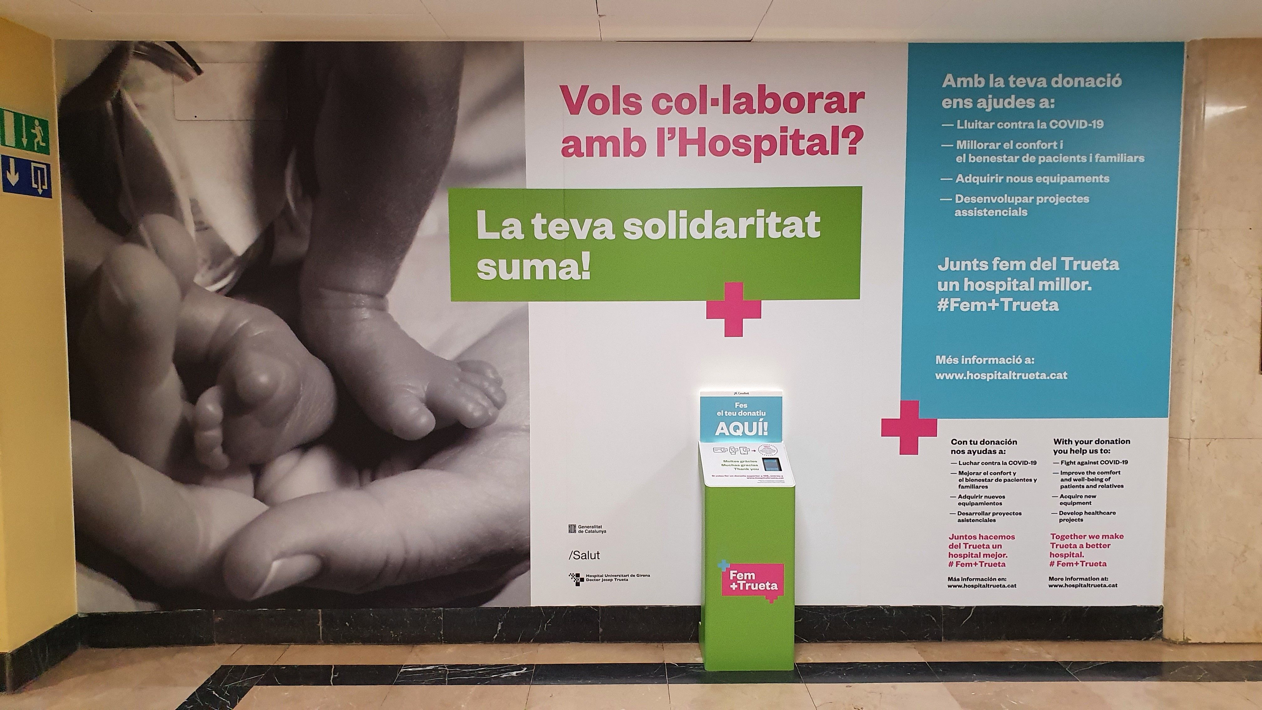L’Hospital Universitari de Girona Doctor Josep Trueta ha habilitat un nou espai solidari al passadís d’entrada al centre, just al costat dels ascensors. Es tracta d’una iniciativa que pretén facilitar les microdonacions de la ciutadania en el marc del programa “Fem+Trueta”.