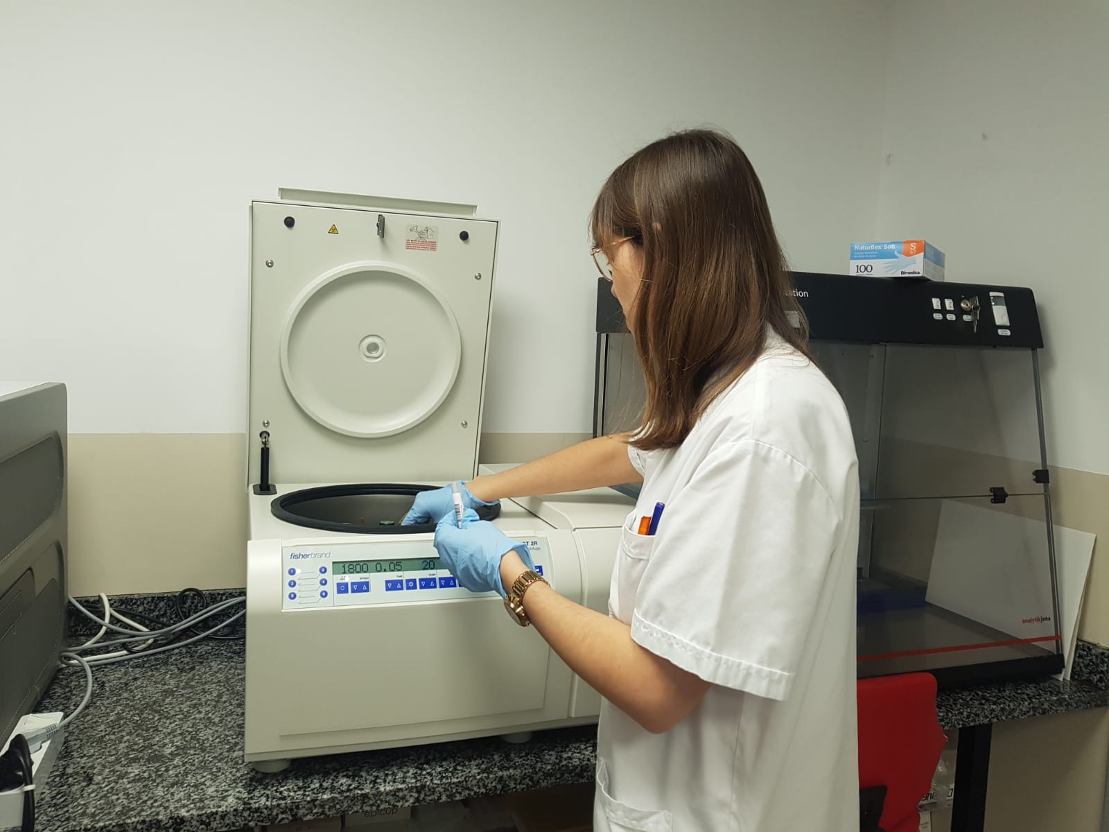 Un dels passos imprescindibles per realitzar aquesta tècnica és la separació del plasma de la resta de la sang del pacient, pas per al qual es requereix d’una màquina centrífuga d’última generació, aparell del qual fins ara no es disposava al Servei d’Anatomia Patològica. Aquest fet comportava que s’haguessin d’acumular diverses mostres per tal de poder fer la separació de plasma i sang en altres dependències de l’Hospital. Amb la incorporació de la nova màquina centrífuga al mateix Servei d’Anatomia Patològica es podrà fer tot el procés al mateix entorn i reduir en un dia l’obtenció del diagnòstic final.