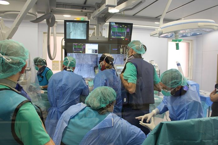 En cas que no s’hi pogués accedir per l’artèria femoral, que és la via més freqüent, el procediment anirà a càrrec de l’equip de cirurgians cardíacs, a la sala quirúrgica.