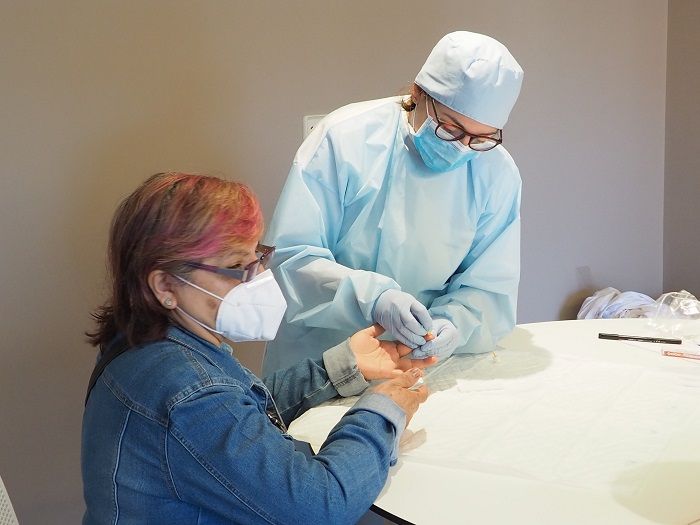 El fet de treballar en parelles pretén facilitar la presa de mostres segura, és a dir, mentre que la infermera procedeix a realitzar l’extracció de mostres, l’auxiliar li dona suport en un entorn net de Covid i mantenint les distàncies de seguretat.