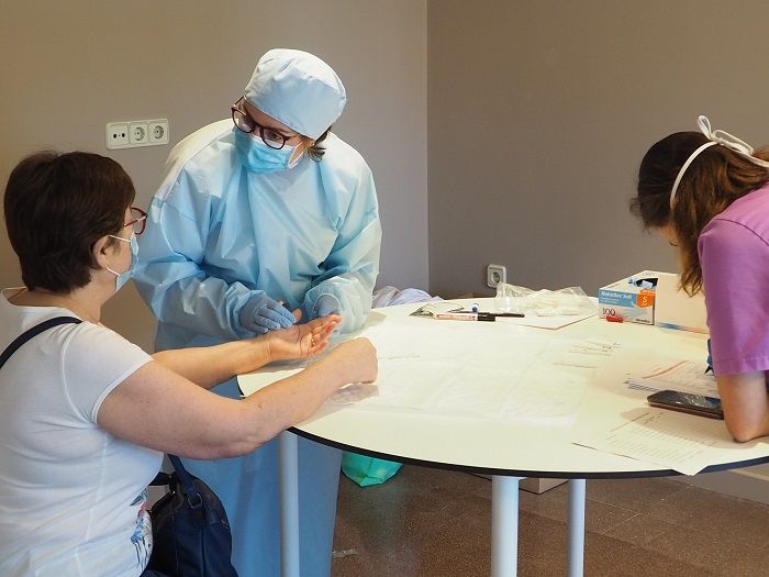 Fent testos ràpids serològics als professionals de la residència MIFAS, aquest matí a Girona