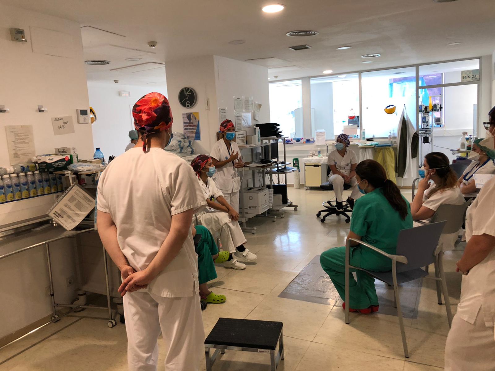 L’esforç més important l’han fet els professionals, molts dels quals han hagut de deixar els seus llocs de treball habituals per incorporar-se a les unitats de crítics, especialment el personal d’infermeria: infermeres de pediatria, d’endoscòpies, hospitalització, de l’àrea quirúrgica... moltes han fet un esforç per formar en l’atenció al pacient crític i per adaptar-se a les noves condicions de treball. Des de la Direcció d’Infermeria s’han ampliat al 100% les jornades que tenien reduccions i s’han fet 46 noves contractacions, sobretot per cobrir els llocs de treball que deixaven aquestes infermeres reubicades en unitats de crítics. D’aquestes, hi ha 16 estudiants de quart d’Infermeria, que acaben el seu grau en poques setmanes. Tots aquests havien fet pràctiques en àrees de crítics i s’han incorporat a les UCI que s’han habilitat per fer front a la pandèmia.