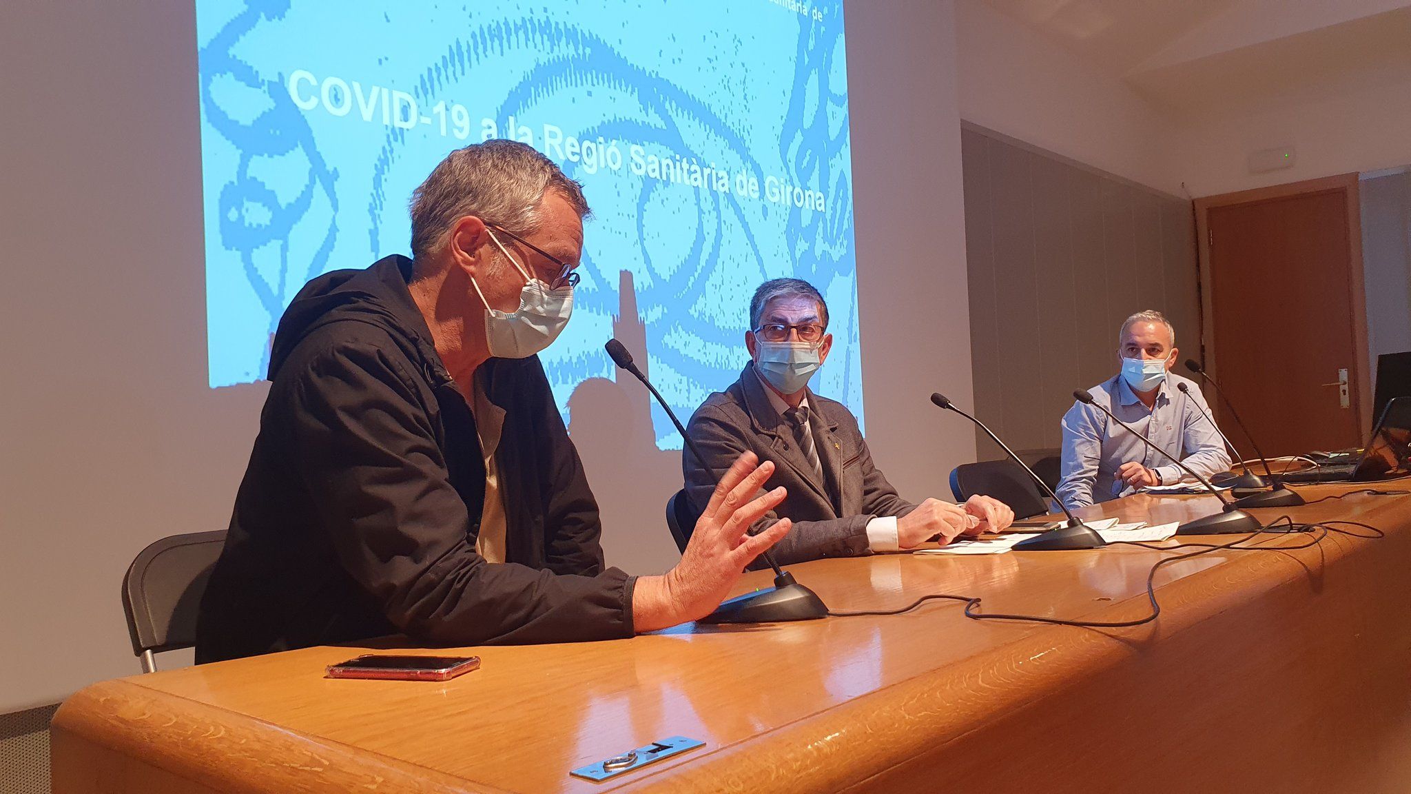 El cap de la Unitat de Suport a la Recerca de l’Institut Català de la Salut (ICS) a Girona, Rafel Ramos, ha presentat una comparativa entre l’impacte de la primera onada i l’actual, i n’ha extret destacats com que actualment els hospitals estan atenent només una tercera part dels pacients amb patologia de base, en comparació amb fa uns mesos, una circumstància que s’atribueix a la gestió dels dispositius d’atenció primària en la protecció d’aquest col·lectiu de risc. Ramos també ha comparat la xifra de positius que van requerir ingrés hospitalari a la primavera (17,2% dels positius) amb la fase actual (3,1%), i d’aquests també el percentatge que havia d’ingressar a la UCI (1,8 versus 0,64%). Pel que fa a la mortalitat hospitalària, tot i detectar-se ara  tres vegades més de casos positius, l’índex de defuncions ha baixat del 2,9% de la primera onada al 0,21% actual. Això s’atribueix, d’una banda, als resultats dels cribratges i als nous protocols sanitaris, que s’han adaptat a l’heterogeneïtat del territori, i de l’altra a l’especial cura que s’està tenint amb els col·lectius més vulnerables, que es protegeixen molt més.