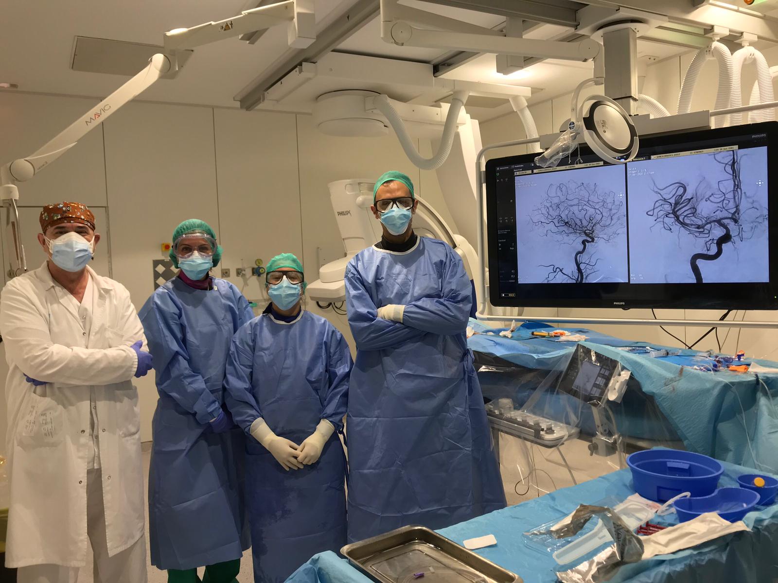 Actualment, el Trueta compta amb dos metges especialitzats en el tractament endovascular de l’ictus isquèmic i fa uns mesos s’ha començat la formació d’un tercer neurointervencionista. La realització d’aquests procediments va a càrrec d’equips formats per un professional de neurologia i un de radiologia especialitzats, amb la col·laboració del Servei d’Anestesiologia i de professionals d’infermeria especialitzada, amb formació específica i tots coordinats pels neuròlegs de la Unitat d’Ictus.
