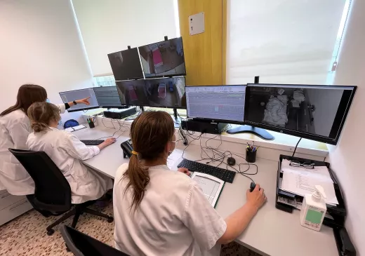 L’activitat de la Unitat ha registrat des de l’entrada en servei de les noves instal·lacions al Santa Caterina i fins al febrer de 2024 un total de 3.022 proves diagnòstiques, algunes de les quals es realitzen en horari nocturn, com les videopolisomnografies completes. En aquests casos, el o la pacient passen la nit a la Unitat, on se’ls monitora l’activitat cerebral, muscular, cardiorespiratòria, el moviment dels ulls, la posició i el ronc per poder fer un diagnòstic precís del tipus d’afectació del son que pateixen.