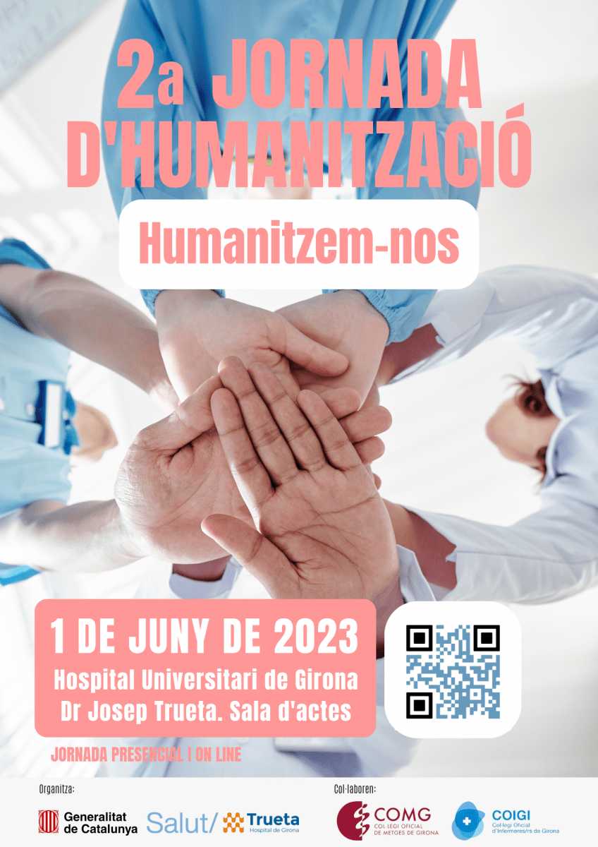 Sota el lema “Humanitzem-NOS”, us convidem a la 2a Jornada d'Humanització organitzada des de la Comissió d'Humanització de l'Hospital Universitari de Girona Dr. Josep Trueta, que tindrà lloc el proper 1 de juny a la sala d'actes del centre hospitalari, en format presencial i en línia. El títol és la versió reduïda de la frase “Humanitzem-NOS per humanitzar”, o sigui, tractem-nos bé, per poder tractar bé!