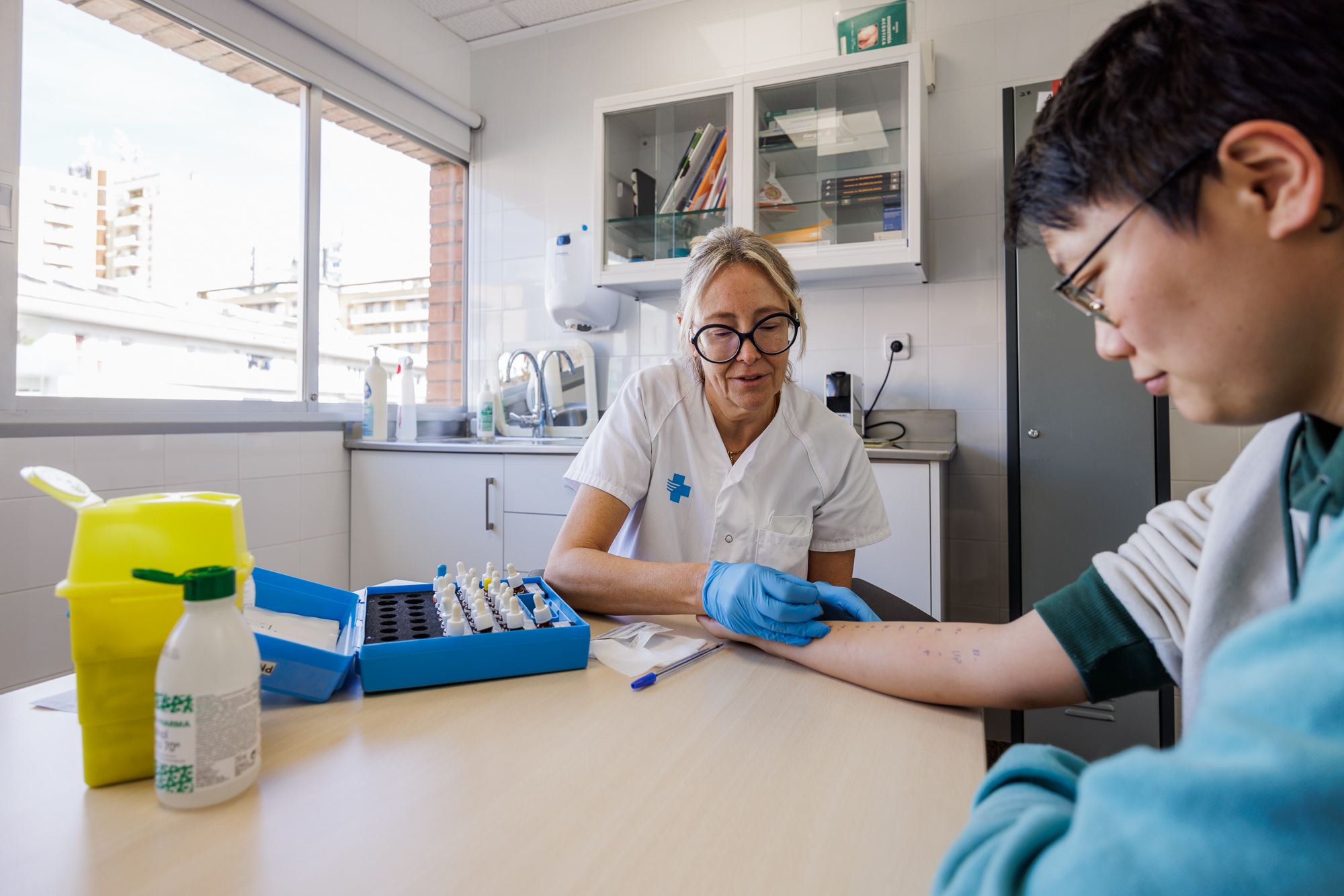 Aquesta disminució del temps d’espera és resultat de la millora organitzativa del Servei d’Al·lergologia, que també ha hagut de respondre a l’augment de la demanda. “La majoria dels pacients arriben a partir de les derivacions procedents de les àrees bàsiques de salut de la Regió Sanitària Girona —exceptuant l’Alt Maresme — a través d’un formulari de derivació”, explica Laia Prat, coordinadora del servei, que dona cobertura a una població de referència de prop de 800.000 habitants. El Servei ofereix assistència, d’una banda, al Centre Sanitari Güell de Girona, on es concentren les Consultes Externes i els gabinets de proves funcionals (espirometries, prick-test o proves  epicutànies), mentre que les intervencions més complexes (immunoteràpia, estudi d’al·lèrgia a medicaments o administració de fàrmacs biològics) es fan a l’Hospital de Dia del Santa Caterina, on disposen dels equips i mitjans per respondre a qualsevol reacció al·lèrgica greu. Les consultes presencials es combinen amb les telemàtiques    —sempre amb el vistiplau del pacient”, incideix Prat— com a alternativa per evitar desplaçaments a aquelles persones de la demarcació que resideixen lluny de Girona.