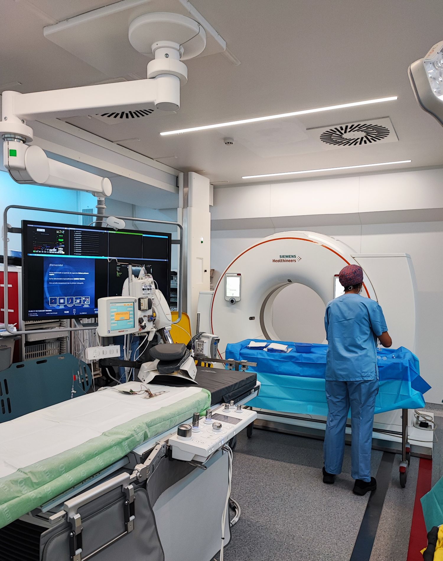 A la vegada, disposar d’aquesta tecnologia a la mateixa sala suposa un pas endavant a l’hora d’agilitzar l’activitat en determinades intervencions pel fet de poder adquirir imatges tomogràfiques d’alta qualitat sense haver de traslladar prèviament el pacient al Servei de Radiodiagnòstic del centre per obtenir-les.