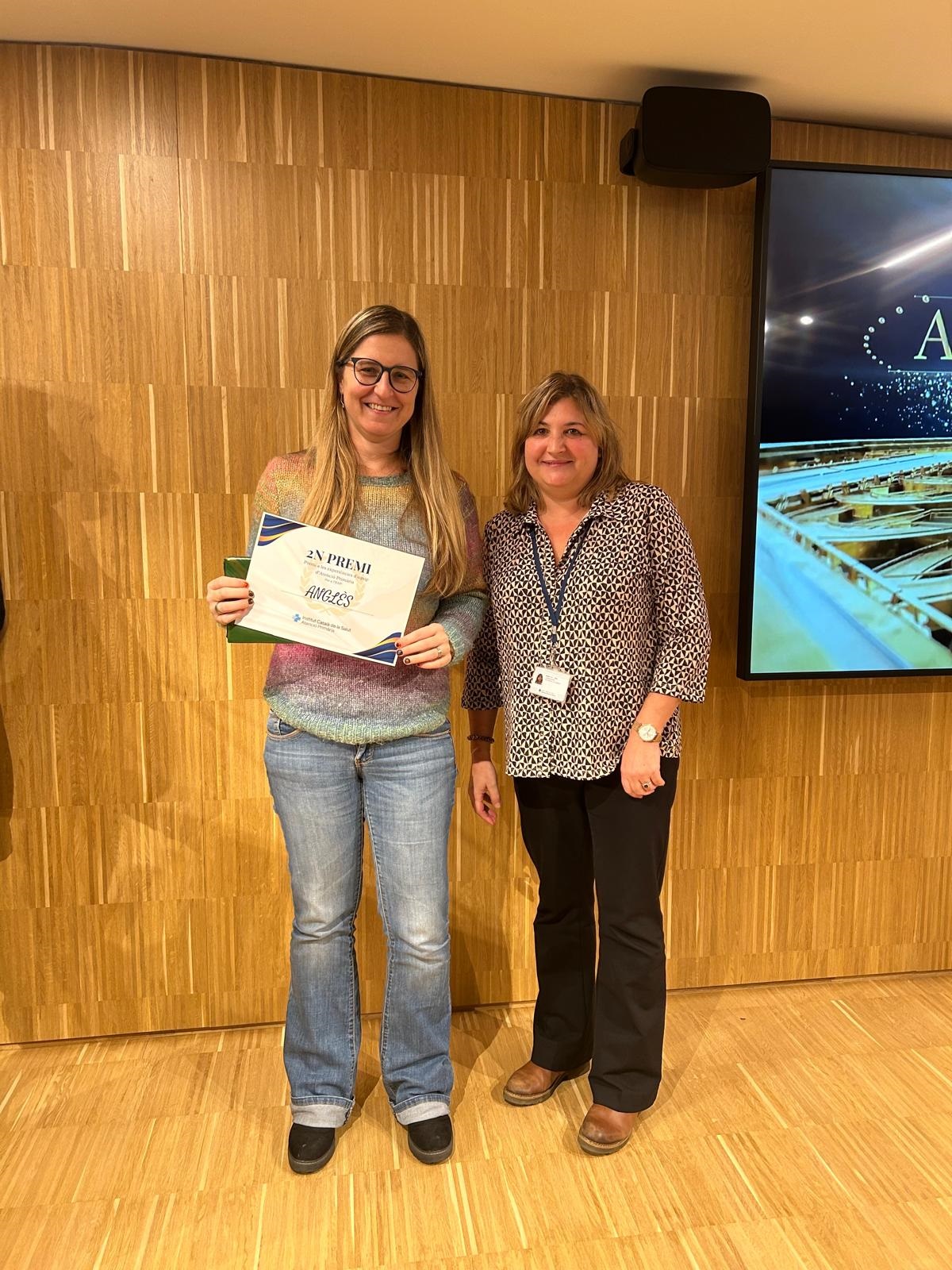 FOTO 2: Representantes del EAP Figueres, acompañadas de la gerenta de Atención Primaria y Comunitaria del ICS Girona, Ester Fages, con el premio obtenido para sumar la mejor puntuación global en las jornadas de intercambio de experiencias organizativas y comunitarias.