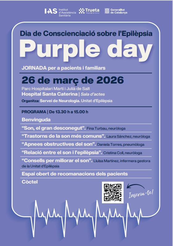 El pròxim 26 de març, la sala d’actes de l’Hospital Santa Caterina acollirà una jornada amb motiu del Dia de Conscienciació sobre l’Epilèpsia (Purple Day), adreçada a pacients, familiars i a totes les persones interessades.