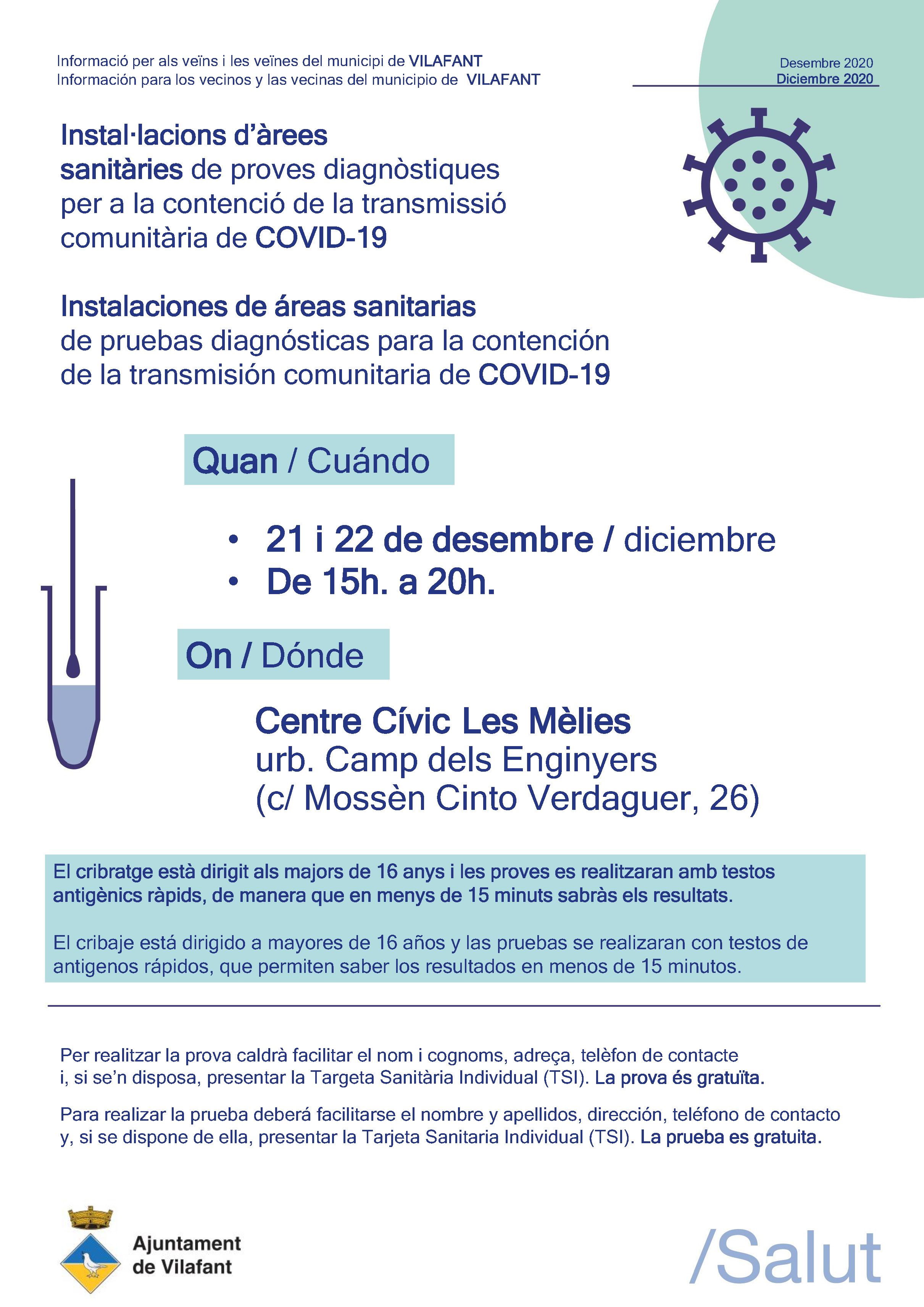 Aquest cribratge s’està organitzant amb la col·laboració de l’Ajuntament de Vilafant, que col·labora en la logística i la difusió local, l’Institut Català de la Salut, que organitza el dispositiu, i l’Agència de Salut Pública de Catalunya.
