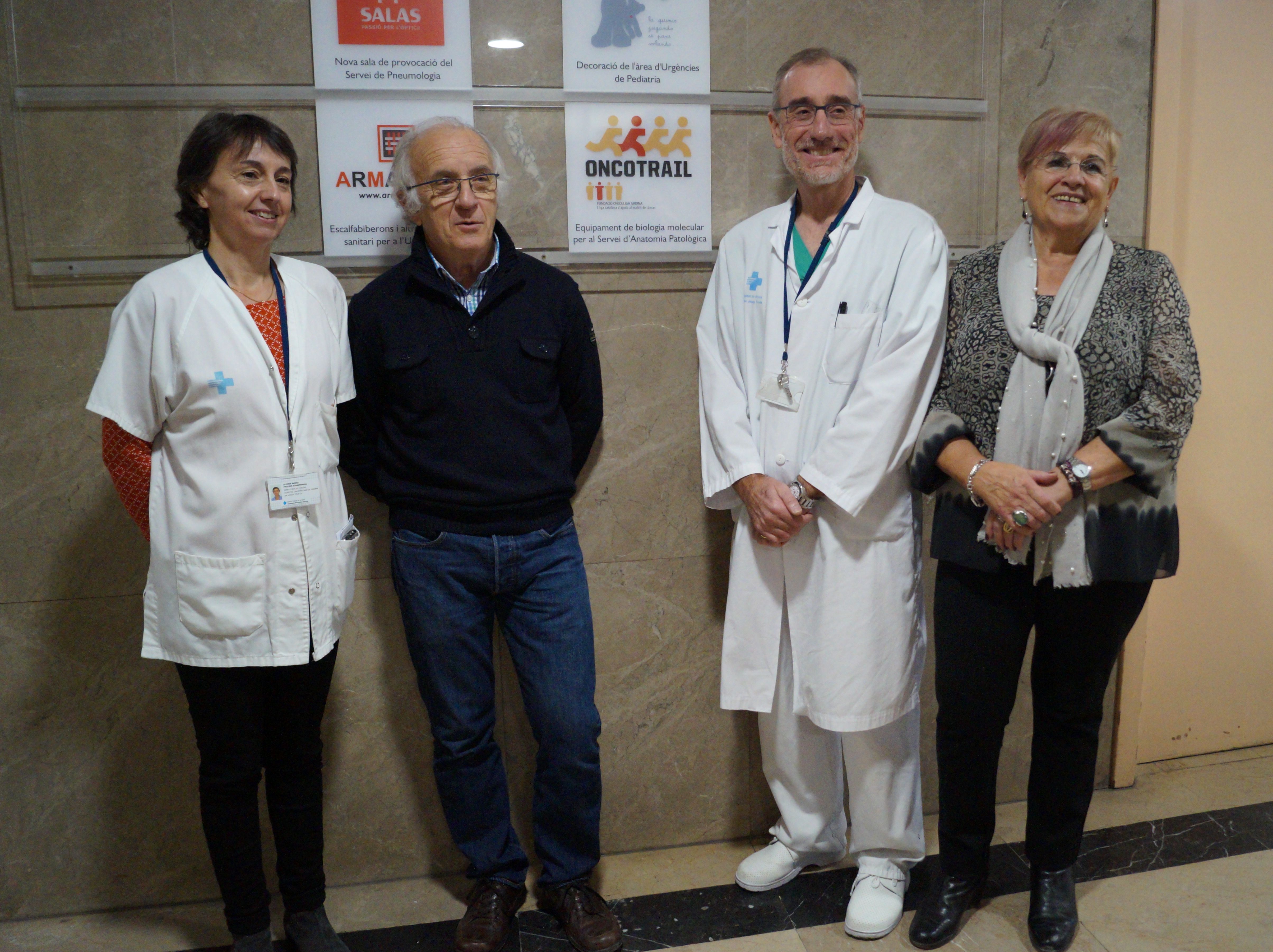 D'esquerra a dreta, Glòria Padura (directora Trueta), Lluís Comet (Oncotrail), Eugeni López.-Bonet (Anatomia Patològica) i Lluïsa Ferrer (Oncolliga)