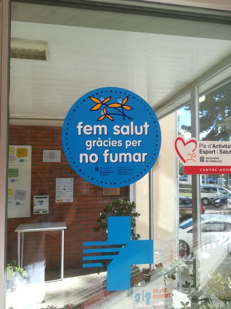 La Llei 28/2005, de 26 de desembre, de mesures sanitàries enfront del tabaquisme i reguladora de la venda, el subministrament, el consum i la publicitat dels productes del tabac prohibeix fumar als centres, serveis o establiments sanitaris, així com en els espais a l’aire lliure o coberts, compresos en els seus recintes. Amb tot, la majoria de les entrades als centres de salut estan a l’aire lliure, de manera que no formen part del recinte sanitari i per tant no hi està prohibit fumar. Davant d’aquest fet, el Programa d’Atenció Primària sense Fum (PAPSF) de l’Agència de Salut Pública de Catalunya, proposa que els accessos exteriors del Centres d’Atenció Primària de Salut siguin també espais sense fum, reforçant així el paper exemplar que tenen aquests centres i el seu compromís amb el control del tabaquisme. Per aquest motiu s’ha portat a terme la distribució d’un conjunt de materials per a la retolació dels accessos als centres amb el missatge “Fem salut, gràcies per no fumar” que s’aniran aplicant de forma progressiva al territori. Aquesta setmana ja s’han començat a retolar els CAP de la demarcació de Girona.