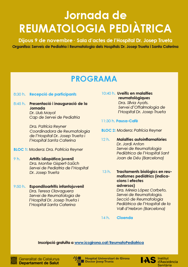 Inscipcions a: www.icsgirona.cat/ReumatoPediatrica