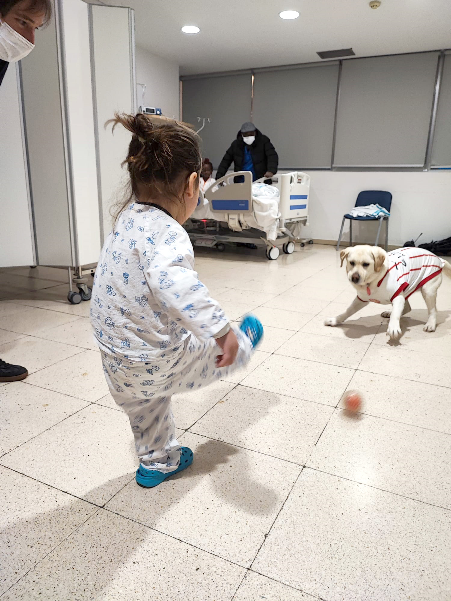 L’àrea de Pediatria de l’Hospital Trueta han rebut aquest matí una visita molt especial. La Canya, gossa oficial del Girona FC, ha compartit una estona de jocs i somriures amb els infants ingressats per tal de transmetre’ls tot el seu afecte.