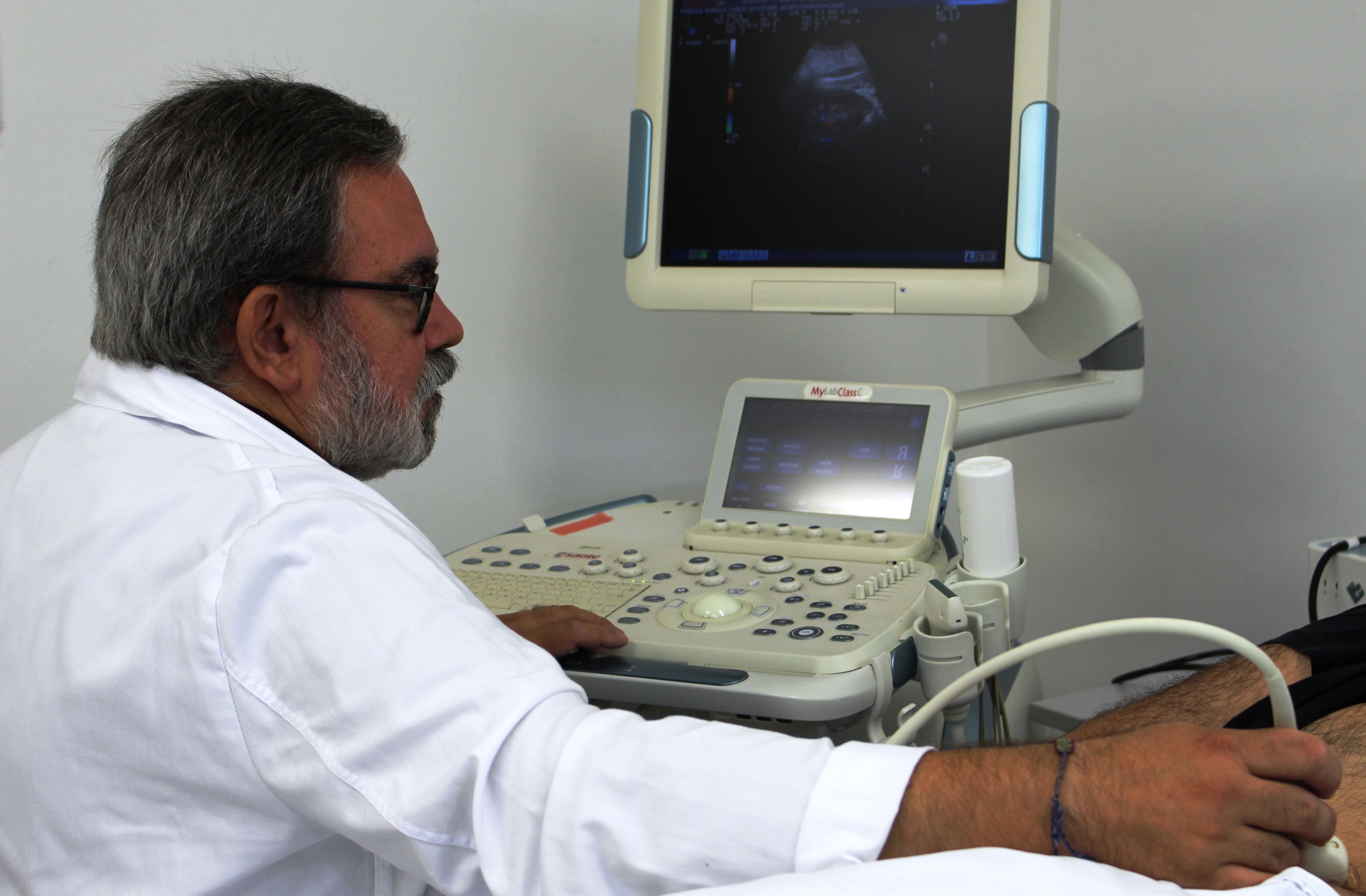 El Dr Pere Torguet, de la Unitat d'Hipertensió, fent una ecografia a un pacient