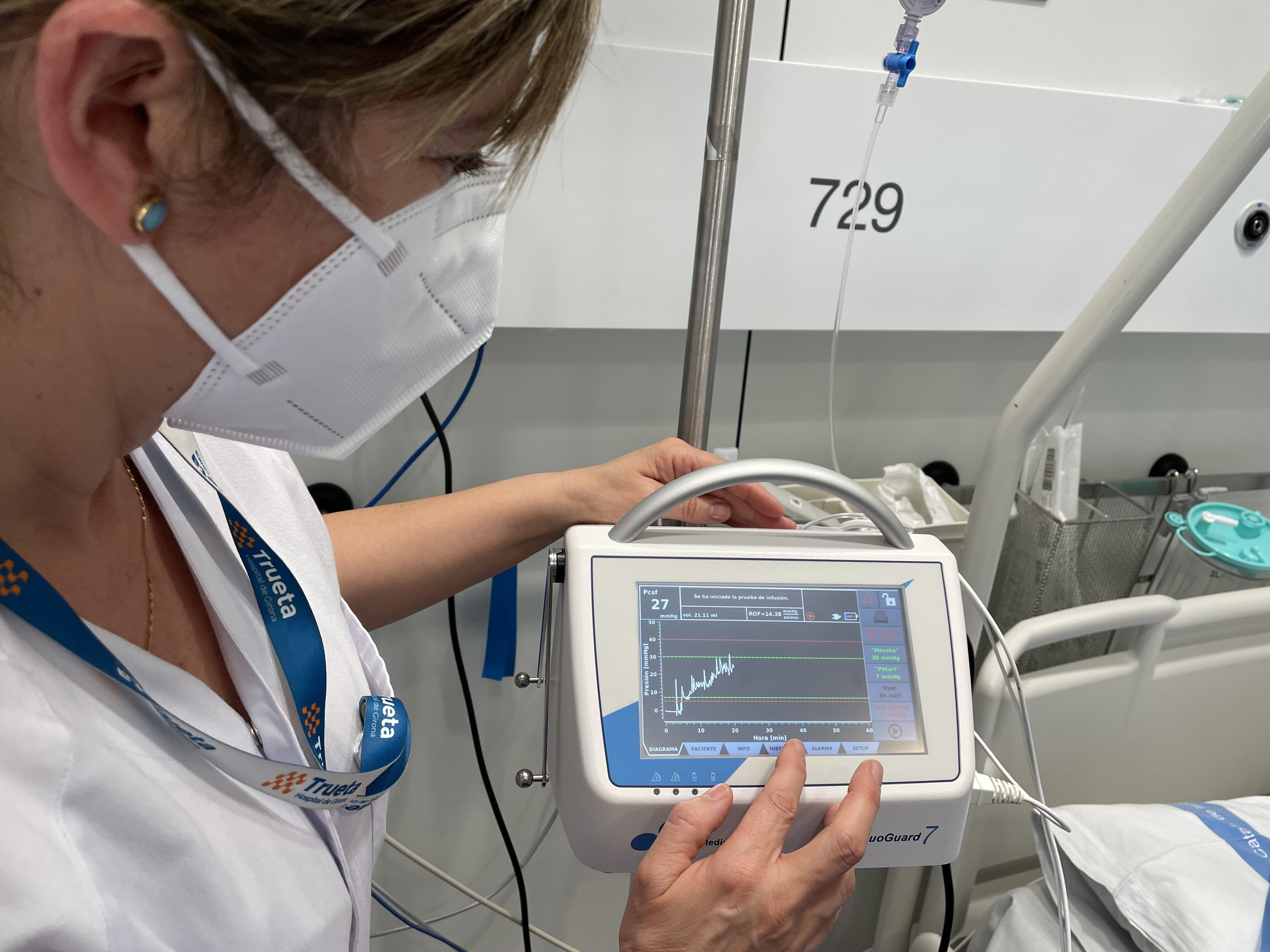 L’Hospital Trueta també ha adquirit un sistema avançat de mesura i drenatge del líquid cefalorraquidi, que millora encara més la seguretat dels pacients perquè permet controlar i regular automàticament la pressió intracranial de manera continuada. És a dir, si la pressió intracranial augmenta, l’aparell augmenta el ritme d'extracció de líquid fins a mantenir-lo a la pressió desitjada, sense necessitat de manipulació per part del professional assistencial, fet que també disminueix el risc d’infeccions.