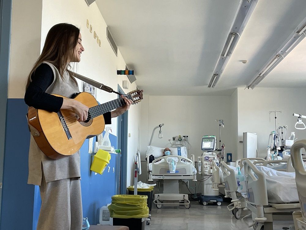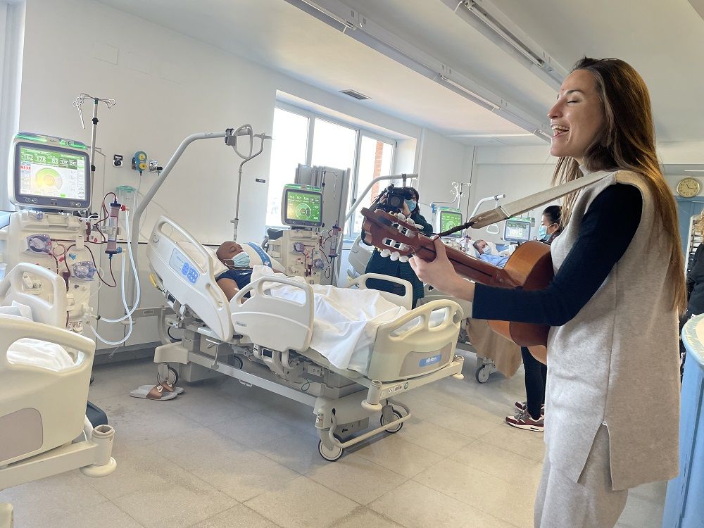 Judit Neddermann és l’artista que ofereix els primers concerts del Sinèrgic, que han tingut lloc aquest matí a la Unitat de Diàlisi i a la planta d'Oncologia