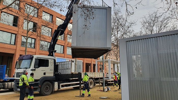 Els mòduls durant la seva instal·lació la setmana passada al CAP Figueres