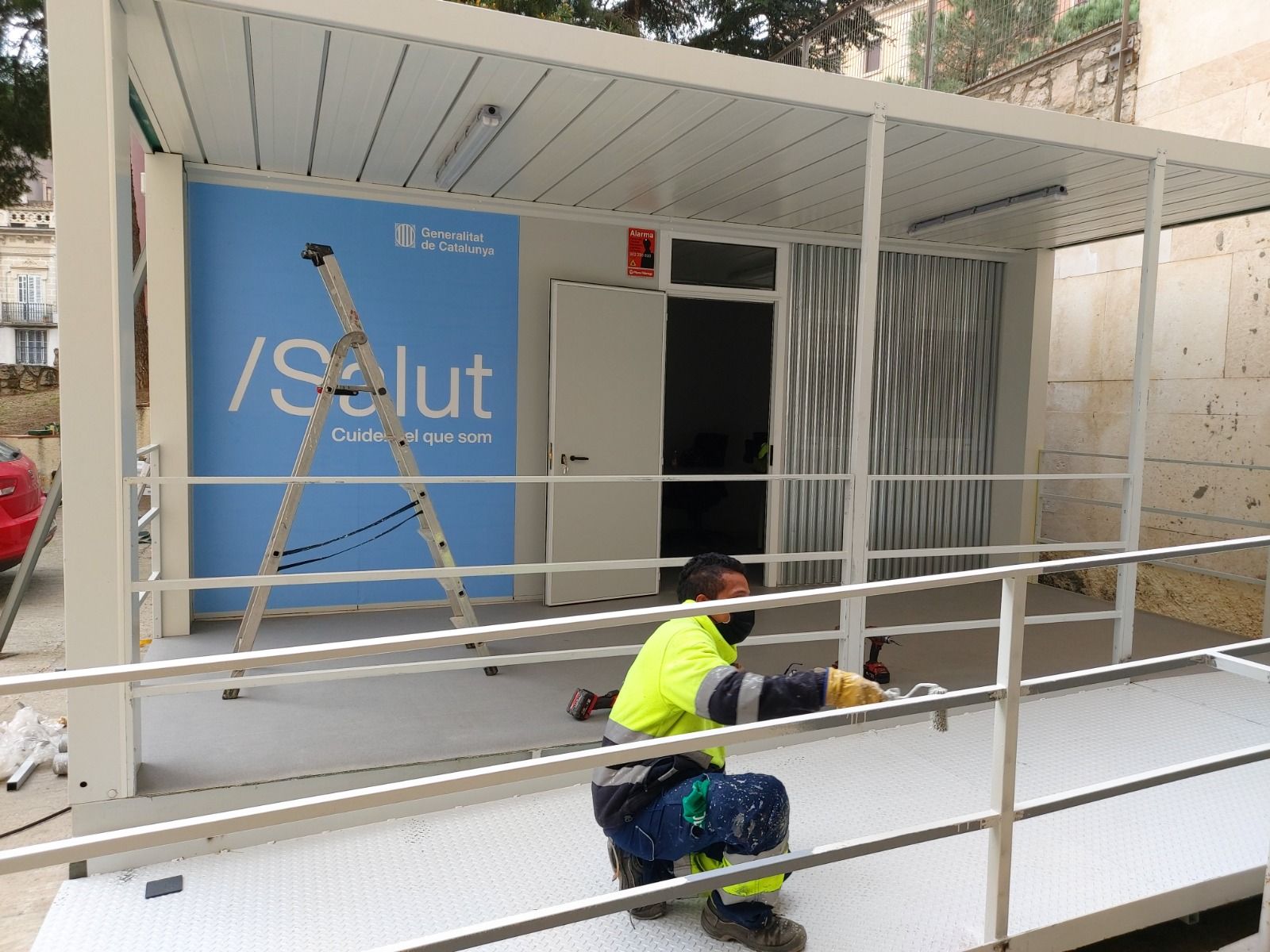 Els mòduls durant la seva instal·lació divendres al CAP Banyoles