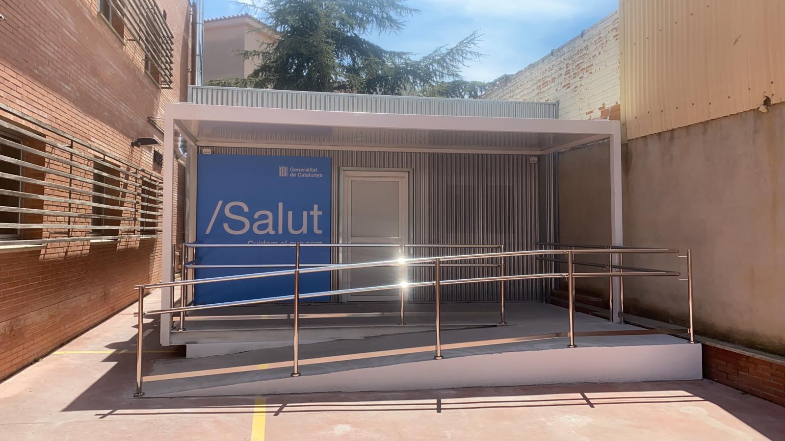 El mòdul situat a l'exterior del CAP de Pineda, on es fan les PCR a les persones sospitoses de tenir Covid19