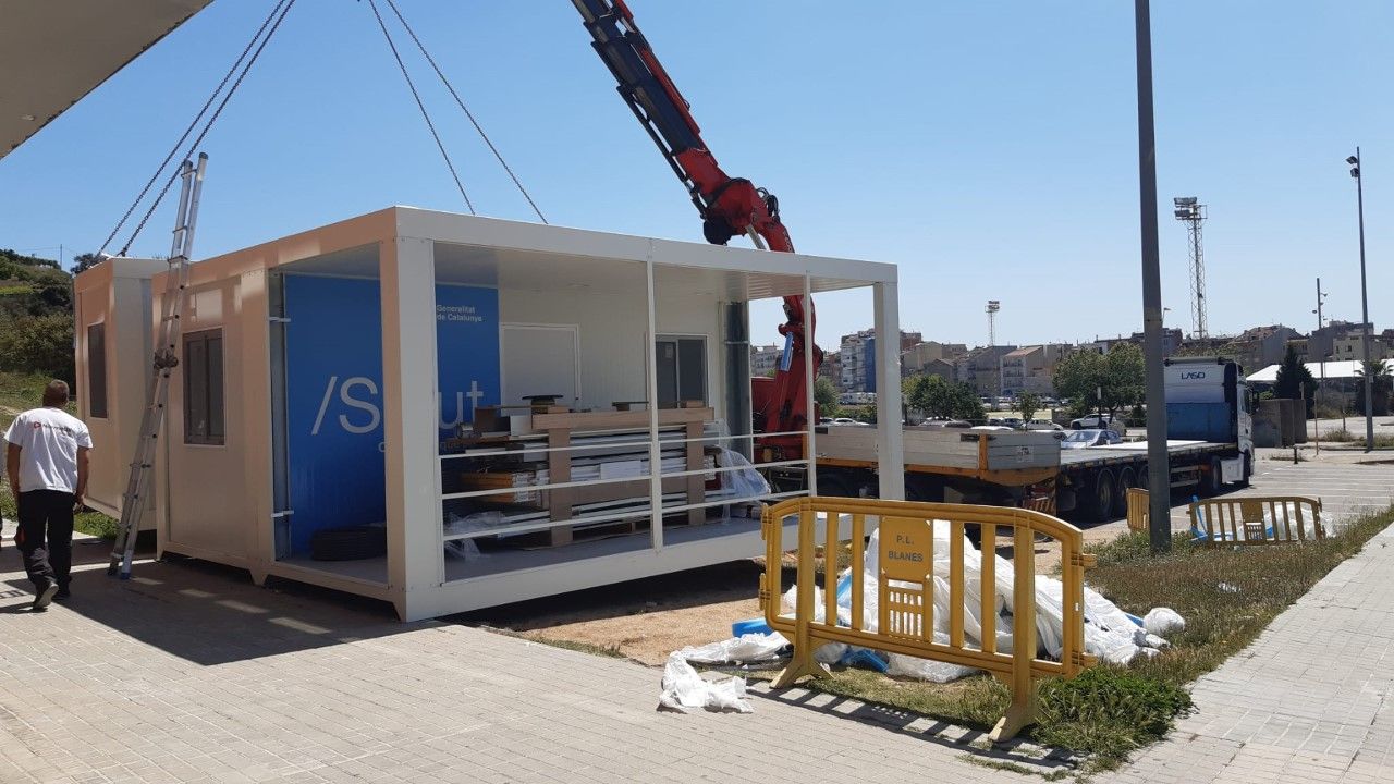 Els mòduls durant la seva instal·lació la setmana passada al CAP Figueres