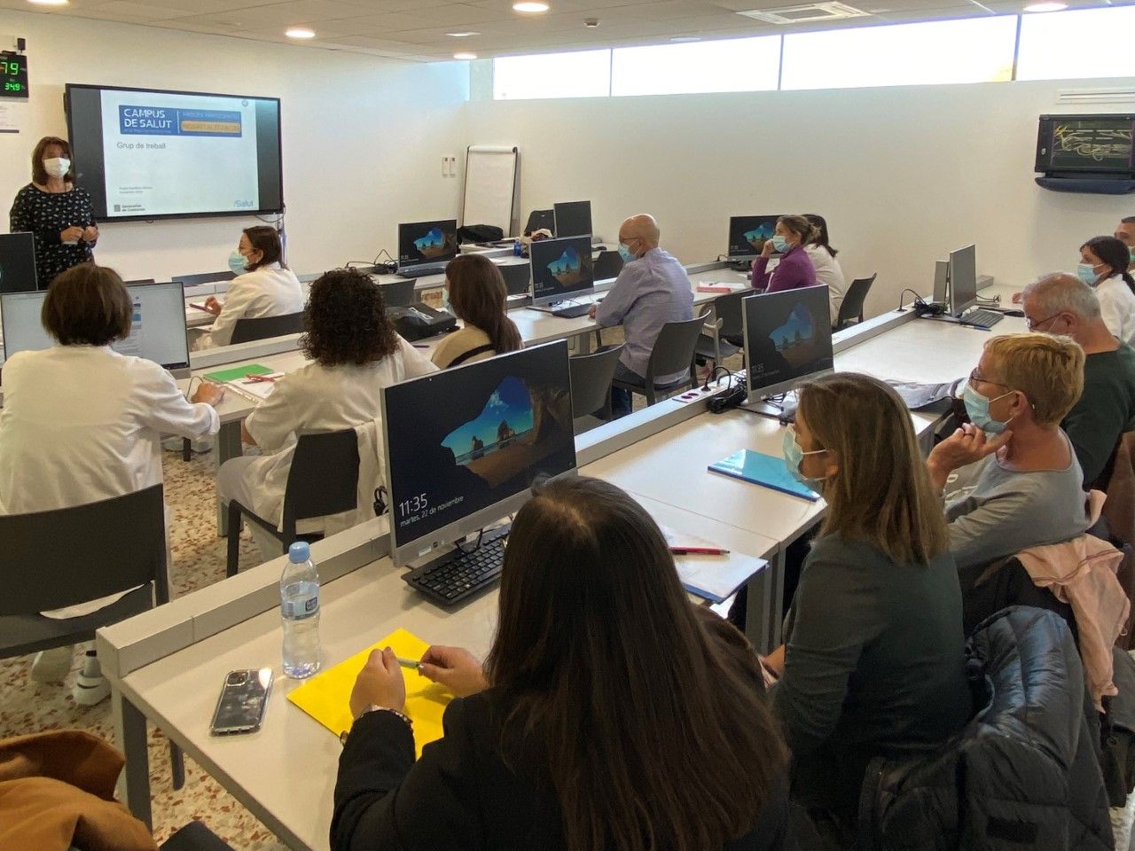 La metodologia utilitzada és la mateixa que en el procés d’urgències i s’ha estructurat en dues etapes. La primera ha sigut en format telemàtic a través d’un qüestionari dirigit als treballadors dels dos hospitals, actiu entre el 25 d’octubre i el 7 de novembre. Durant aquest període s’han recollit 210 respostes, el 55% de les quals corresponen a professionals de l’àrea d’hospitalització d’adults. Un cop completada aquesta primera fase, s’han organitzat dos grups de treball presencial, amb professionals de referència de les diferents especialitats i perfils que hi treballen. Aquesta segona etapa ha comptat amb una trentena de professionals.