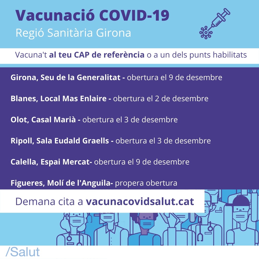 Els espais vacunals estaran oberts a tota la ciutadania i se’n disposarà a Girona, Figueres, Blanes, Calella, Olot i Ripoll