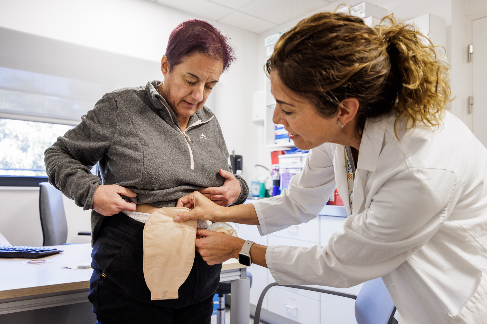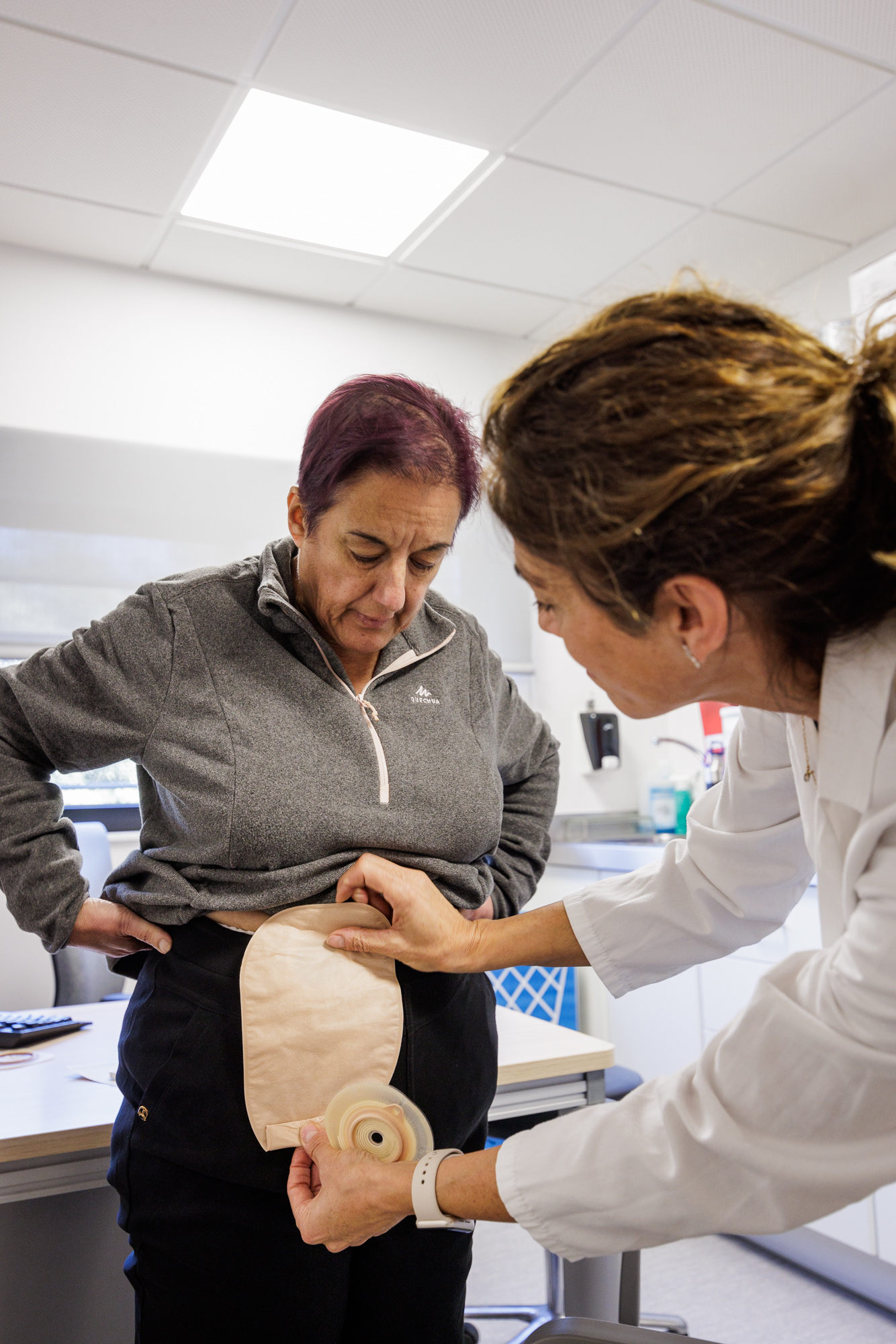 L’Hospital Trueta fa més de 25 anys que té una consulta d’infermeria especialitzada per als pacients amb una ostomia a càrrec d’infermeres formades específicament en estomateràpia, i també, una àmplia experiència professional en el camp de la cirurgia digestiva i urològica. La consulta forma part de la Unitat de Continuïtat Assistencial (UCA) de l’hospital i treballa en coordinació amb cirurgians, dietistes o psicòlegs clínics i els professionals sanitaris del Centre d’Atenció Primària més proper al domicili del pacient a qui s’ha practicat una ostomia, com també amb un equip de professionals de treball social. Això permet fer una valoració integral de cada pacient, que n’inclou tant l’estat físic i psicològic com la dimensió social, per tal de donar coneixements sobre la malaltia, adquirir habilitat per aprendre a manipular i a adaptar-se al millor dispositiu col·lector i a fer-ne la higiene i el manteniment.
