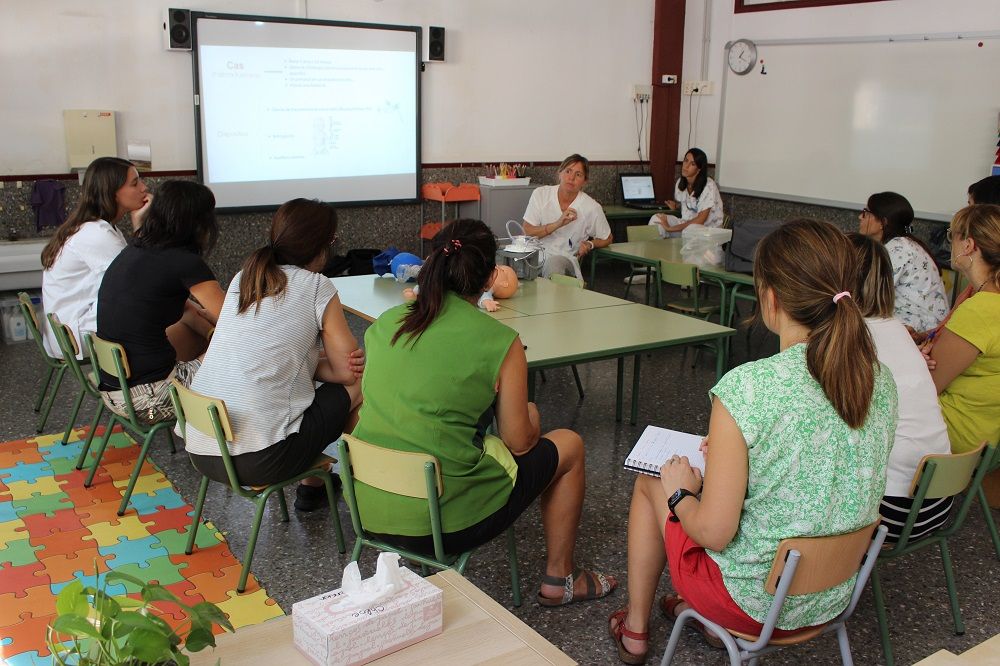 Fotografies realiyzades durant una sessió de capacitació en una escola d'educació primària.