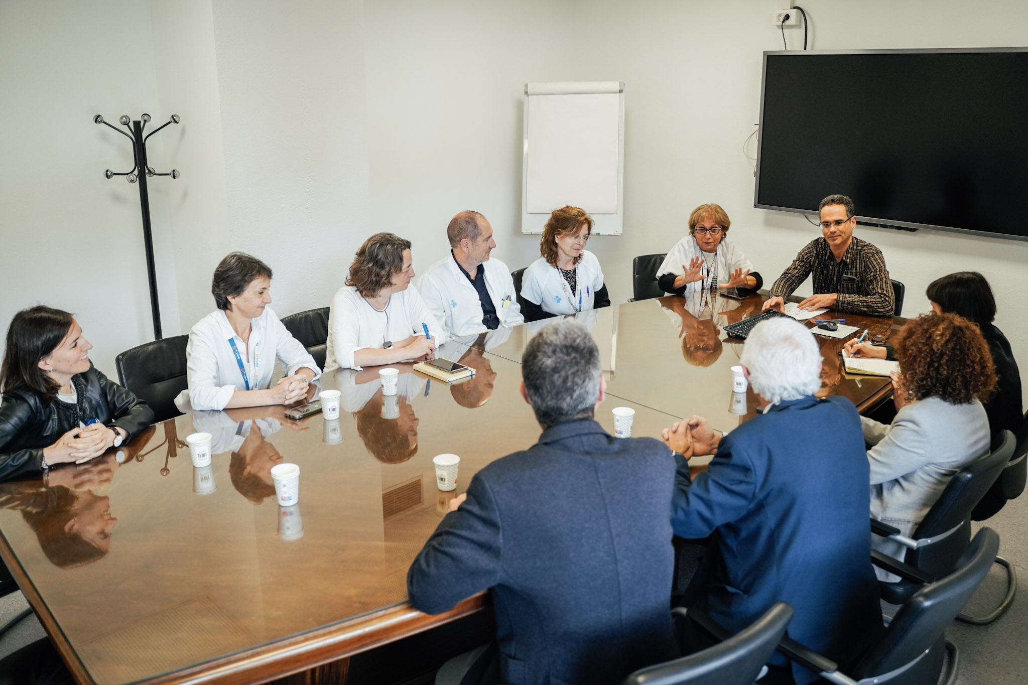 Abans d’iniciar la visita d’obres, s'ha fet una reunió conjunta amb l’equip directiu i professionals de diferents àrees del Trueta per tal comentar els projectes assistencials o d’instal·lacions vinculats al centre hospitalari.